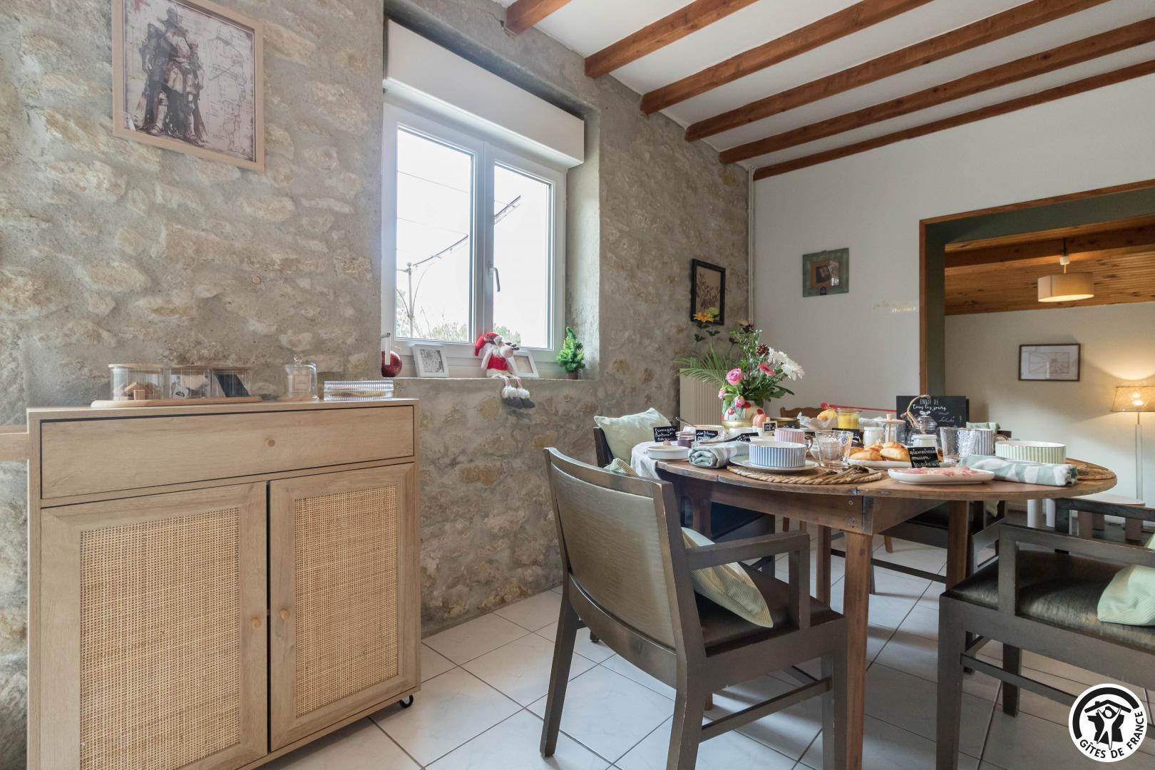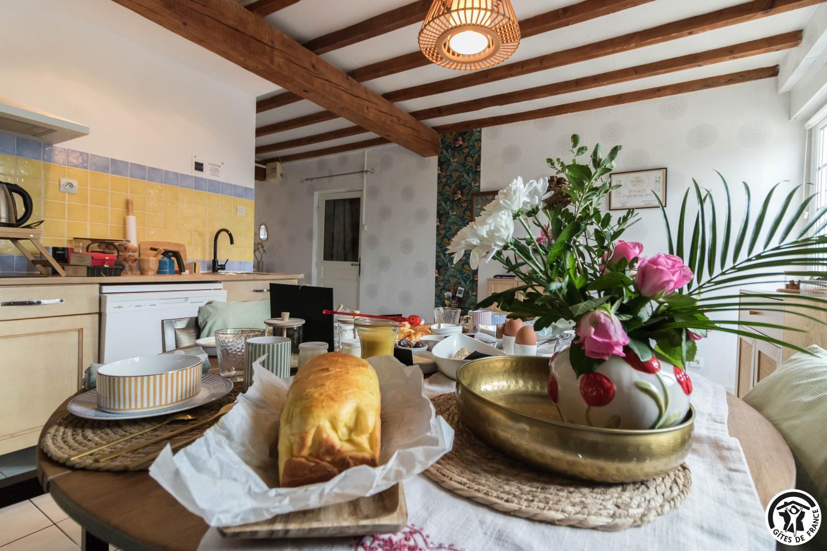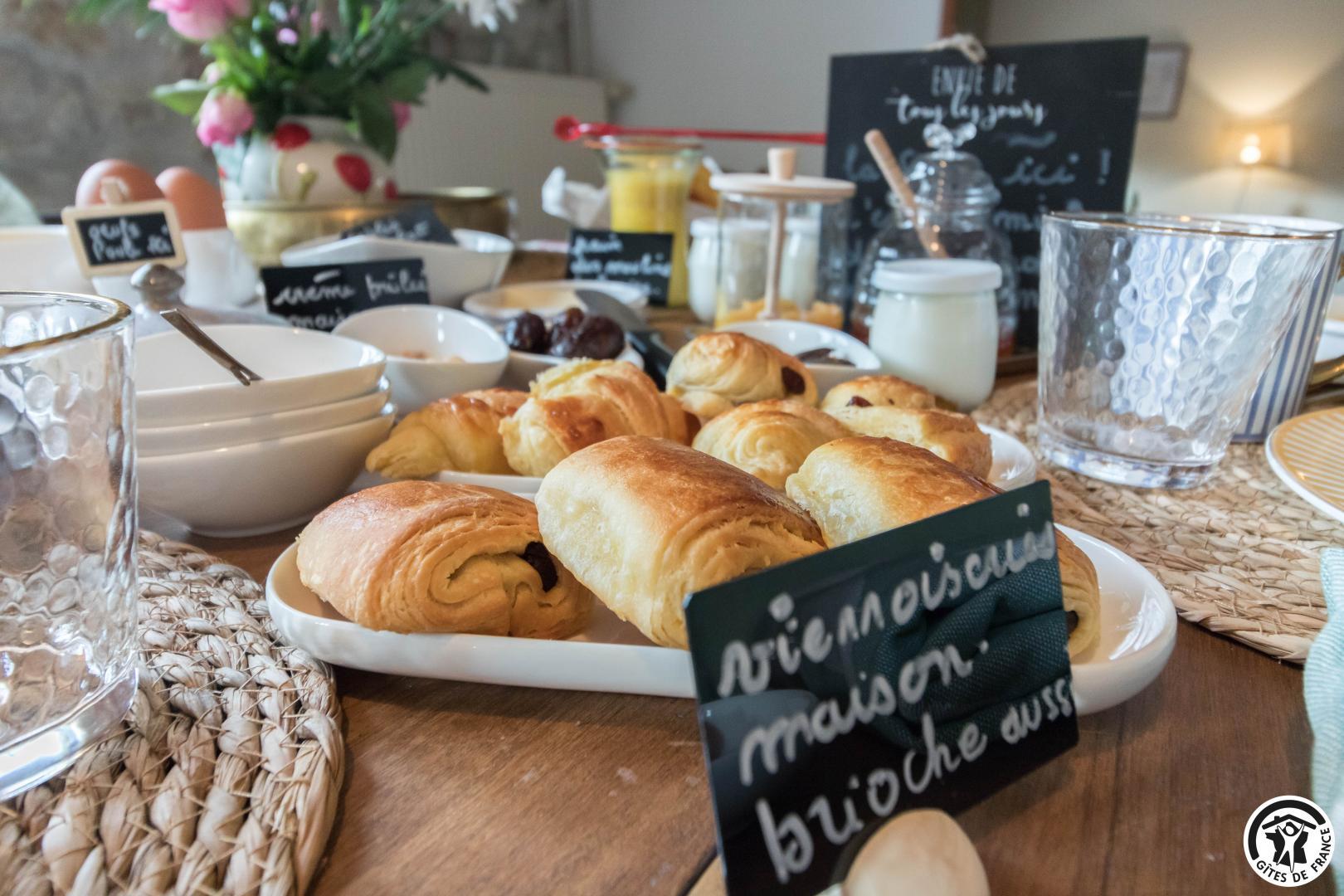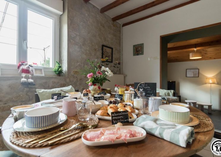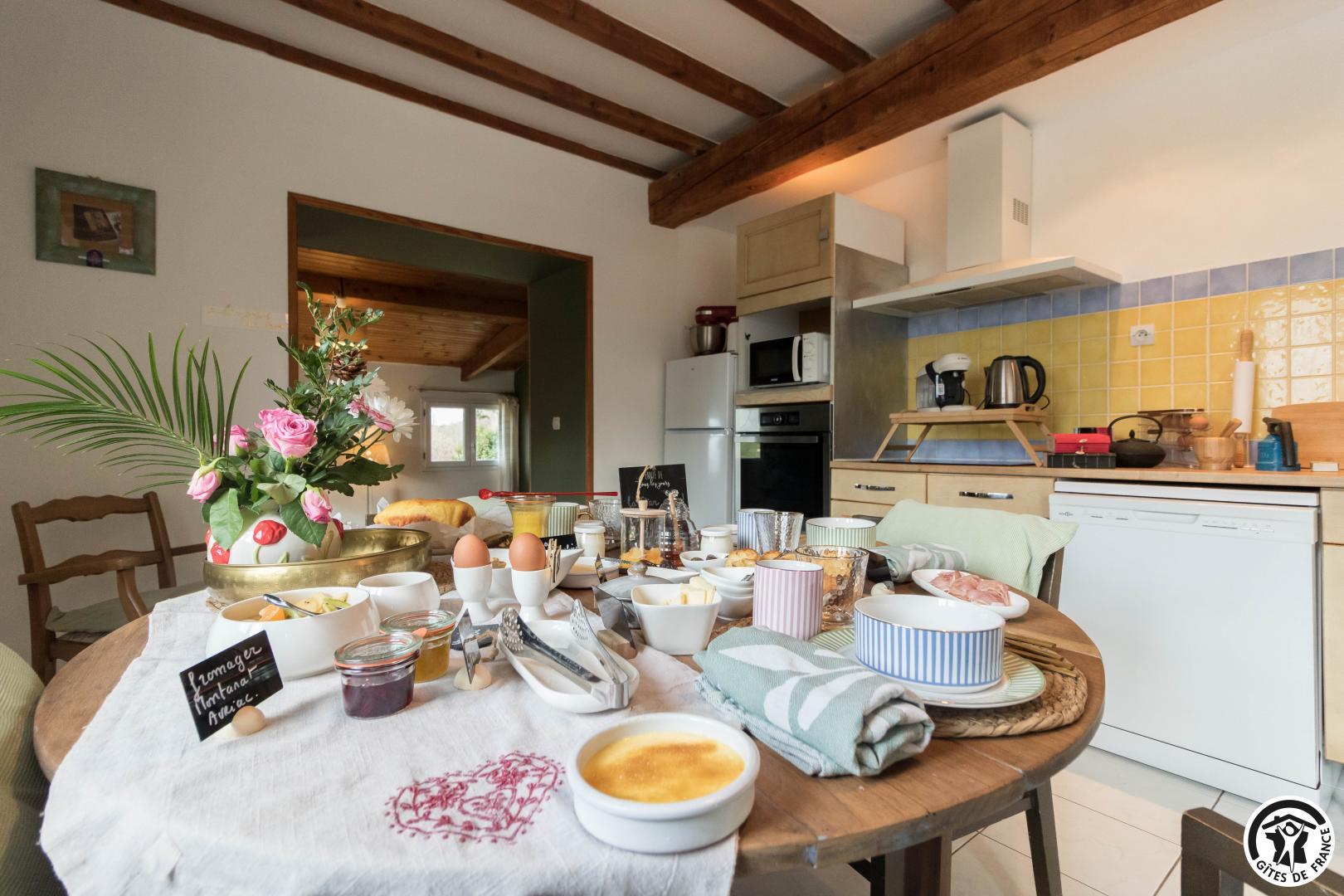 Chaque matin, un petit-déjeuner gourmand, préparé avec des produits locaux et de saison, vous est servi. Sur réservation, nous proposons également une table d’hôtes conviviale, autour de recettes du terroir et de produits frais sélectionnés avec soin.