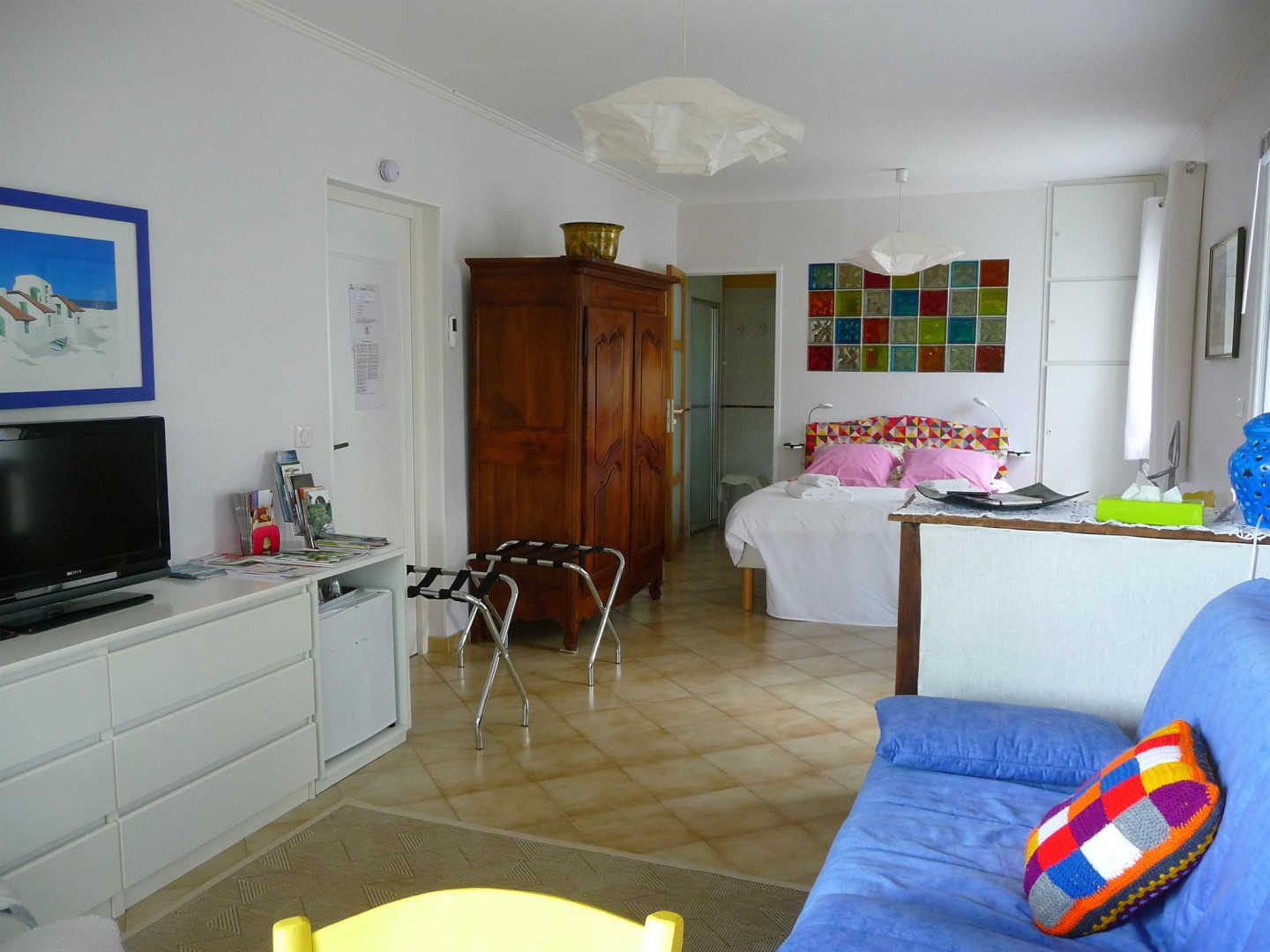 Une seule chambre d’hôtes, format studio, avec accès indépendant. Lit double 140x190cm, sanitaires privatifs. Coin salon, avec tv et canapé . Réfrigérateur top. Un sèche cheveux , et une bouilloire électrique A l’exterieur, un barnum équipé d’une table et chaises et un micro onde Grand jardin arboré, piscine (fond plat, profondeur 1,5m), dans un quartier calme à proximité du centre-bourg de Réalmont.