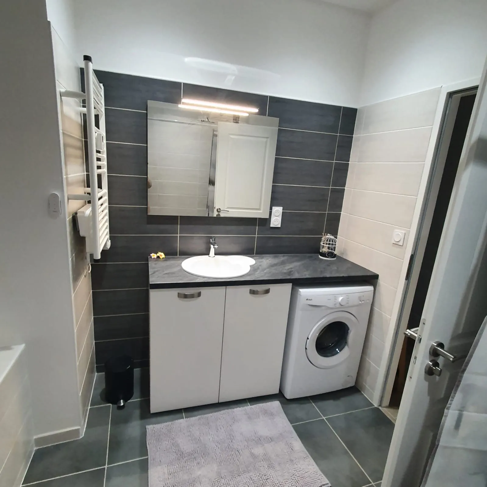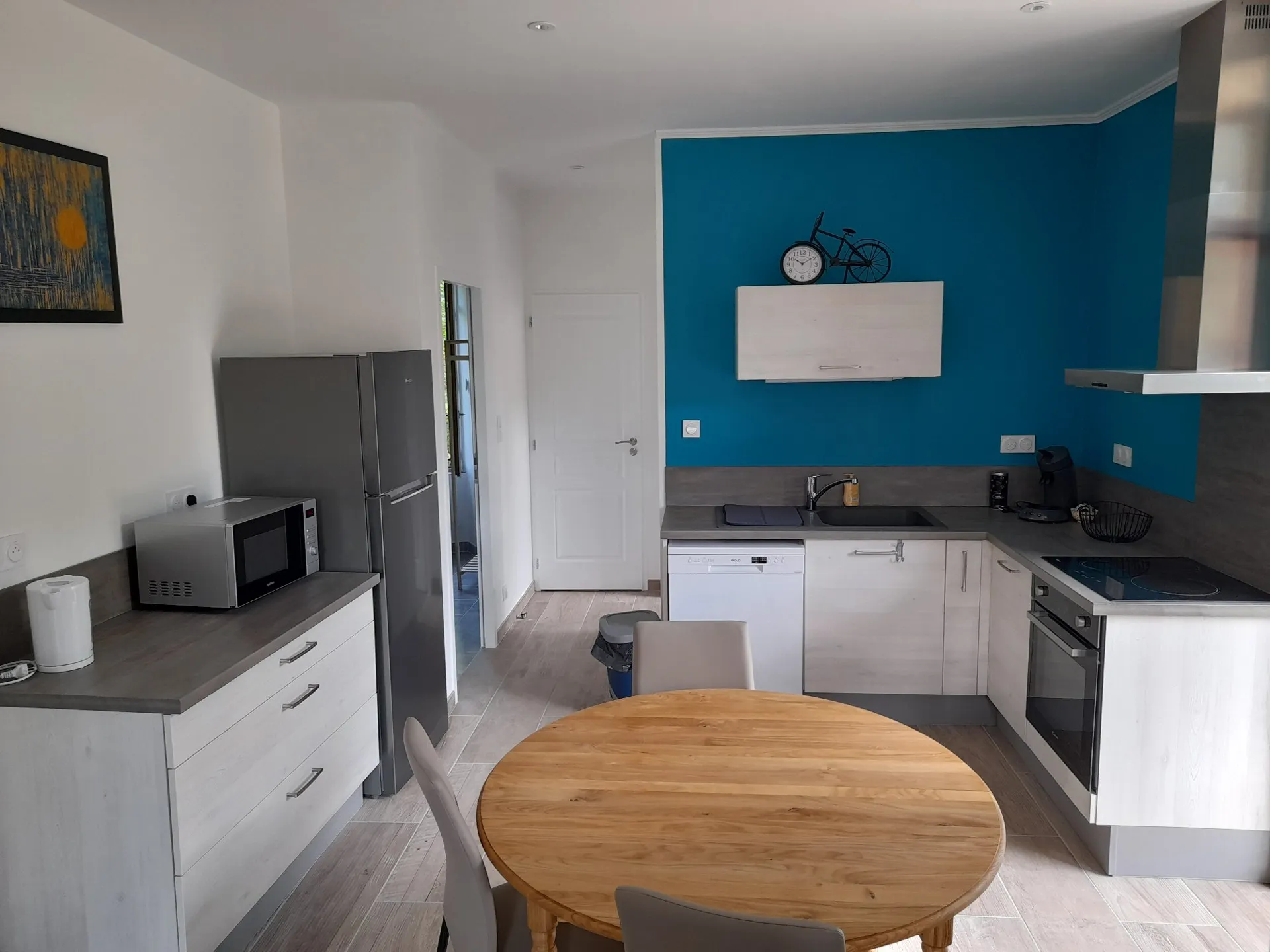 Vous disposerez également d’une cuisine entièrement équipée (plaque, four, micro-ondes, lave-vaisselle, vaisselle et couverts, etc…), d’une salle de bain avec une grande douche à l’italienne et d’un salon avec téléviseur (bouquets Orange et Canal+ ). Wi Fi gratuit.