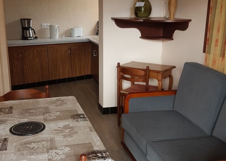 Cet appartement comprend : 1 séjour, 1 cuisine, 1 chambre (1 lit 140), 1 salle d’eau et WC. Balcon avec salon de jardin. Parking. Ouvert d’avril à octobre. .