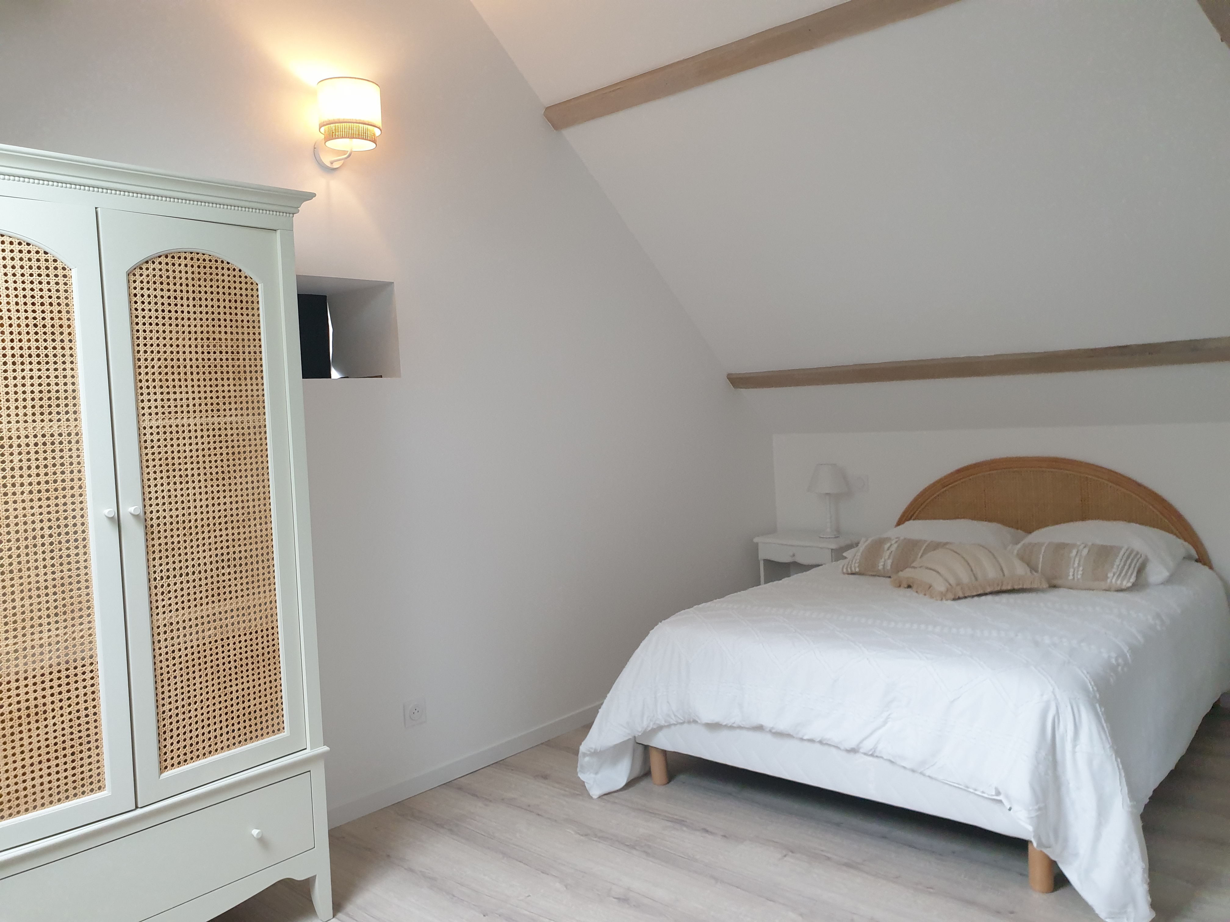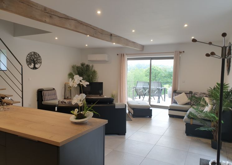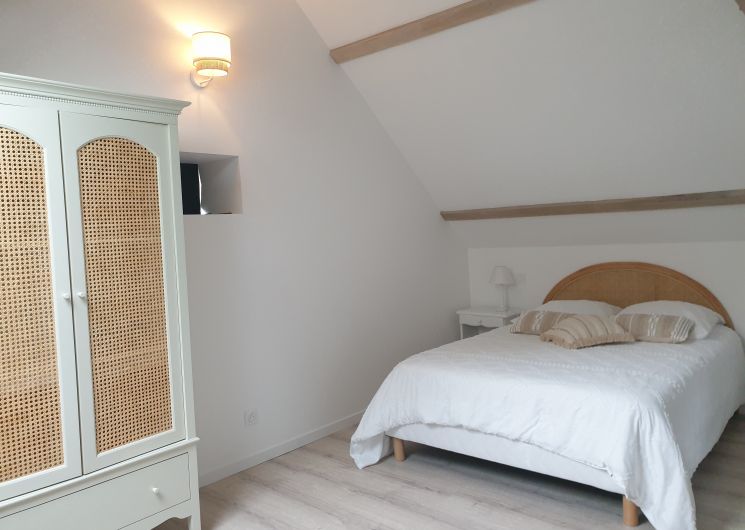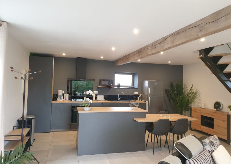 Le gîte est adjacent à la maison d’hôtes des propriétaires. Au rez-de-chaussée, vous trouverez une vaste pièce de vie de 45 m² comprenant une cuisine équipée et intégrée, ainsi qu’un espace salon ouvrant sur une terrasse privative de 35 m² aménagée avec salon de jardin, barbecue, parasol, transats et chaise-hamac. À l’étage, deux chambres confortables avec lits en 140, une salle d’eau avec WC séparés par des portes, assurent intimité et commodité. Le gîte est entièrement équipé avec une connexion Wifi et une climatisation réversible pour un séjour agréable.
