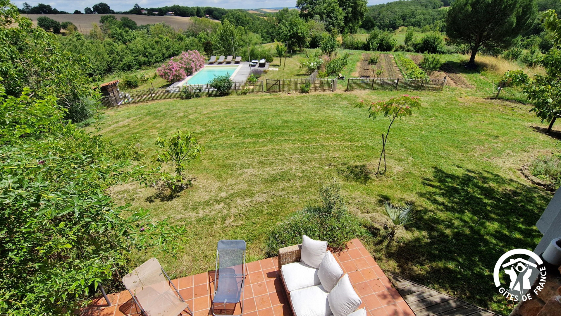 La maison possède deux terrasses sur ses façades sud et est, un jardin non clôturé de 4000m², avec une piscine privée et clôturée.