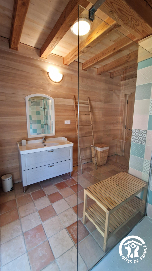Elle est indépendante, rénovée avec des matériaux écologiques et le cachet de l’ancien. Par temps de canicule, la fraîcheur est assurée grâce aux murs épais.