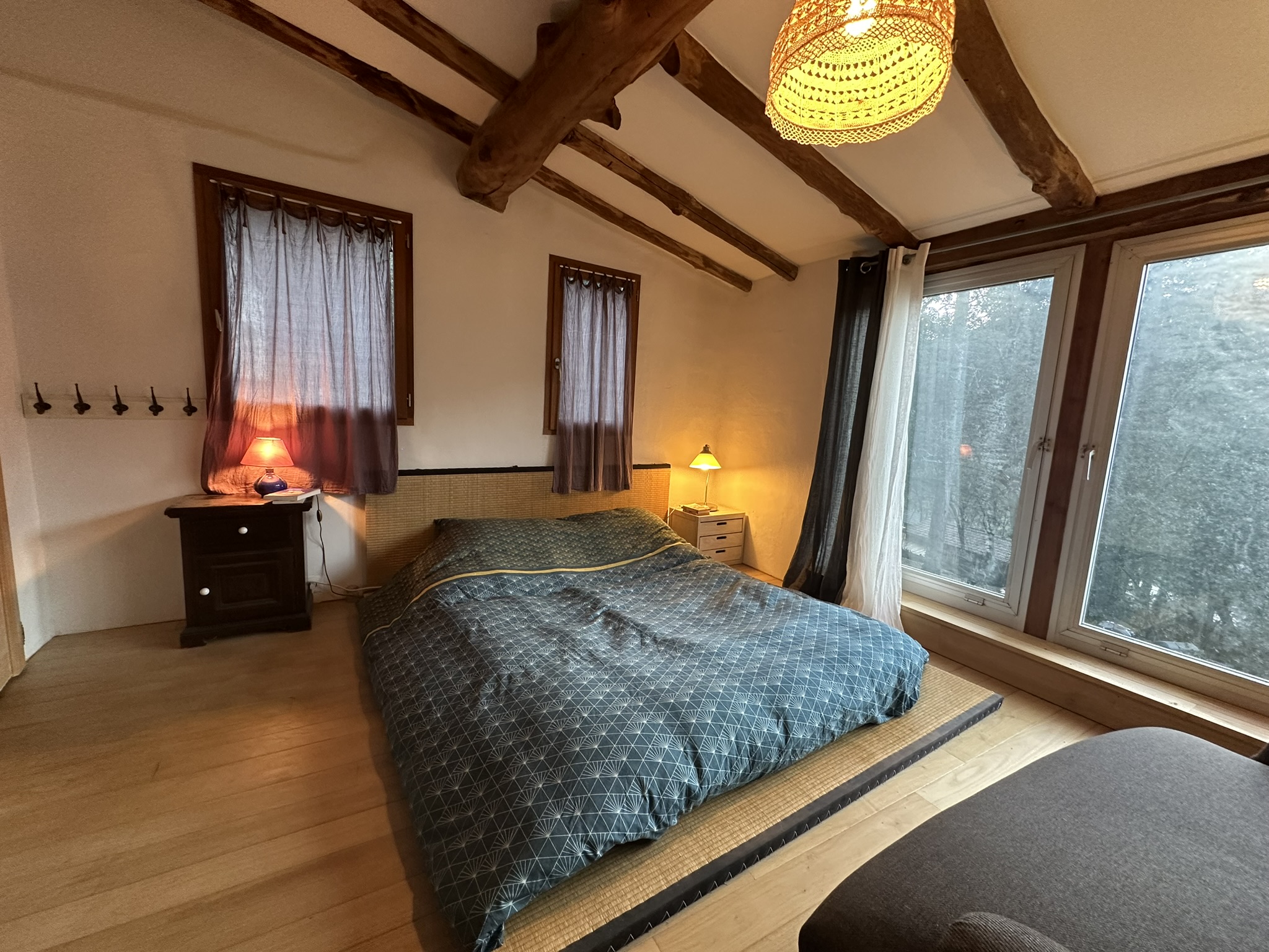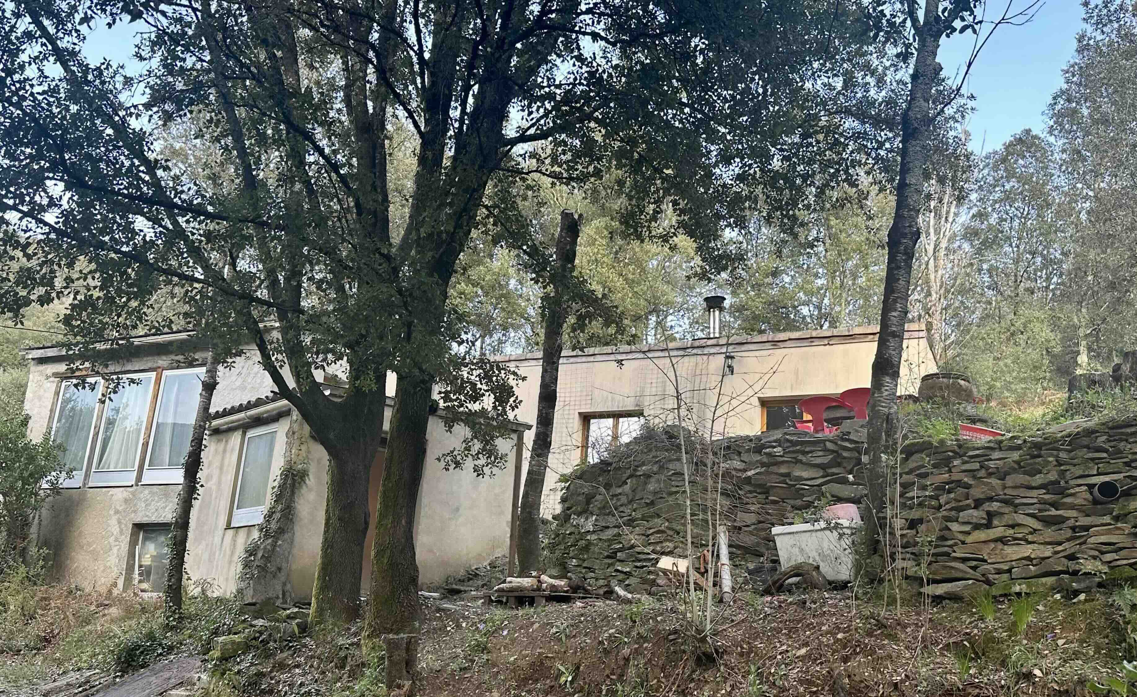 1 gîte dans les arbres, à flanc de colline ; la rivière toute proche, une guinguette, une plage, des soirées, de la culture et un engagement résolu