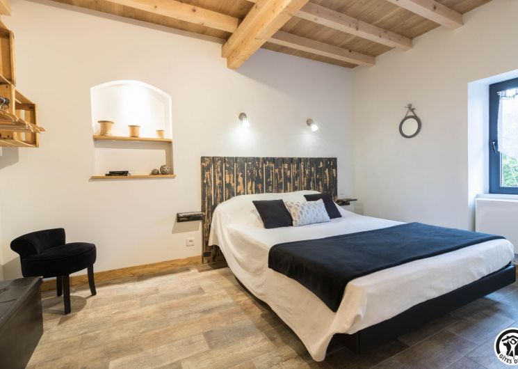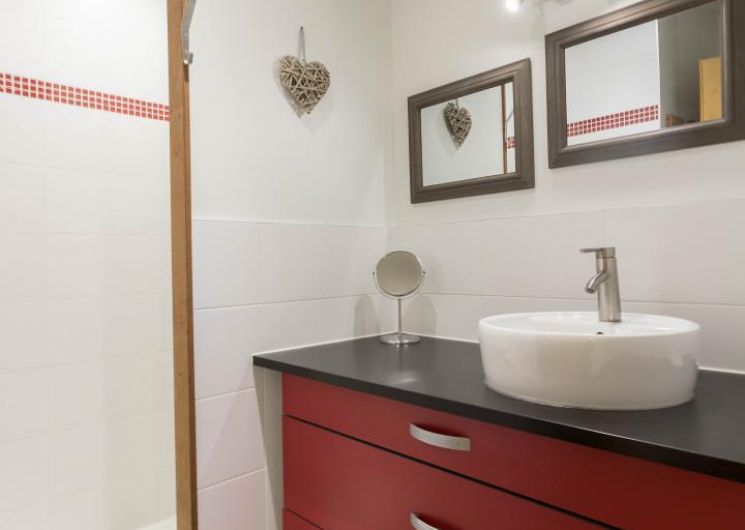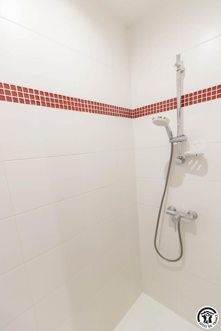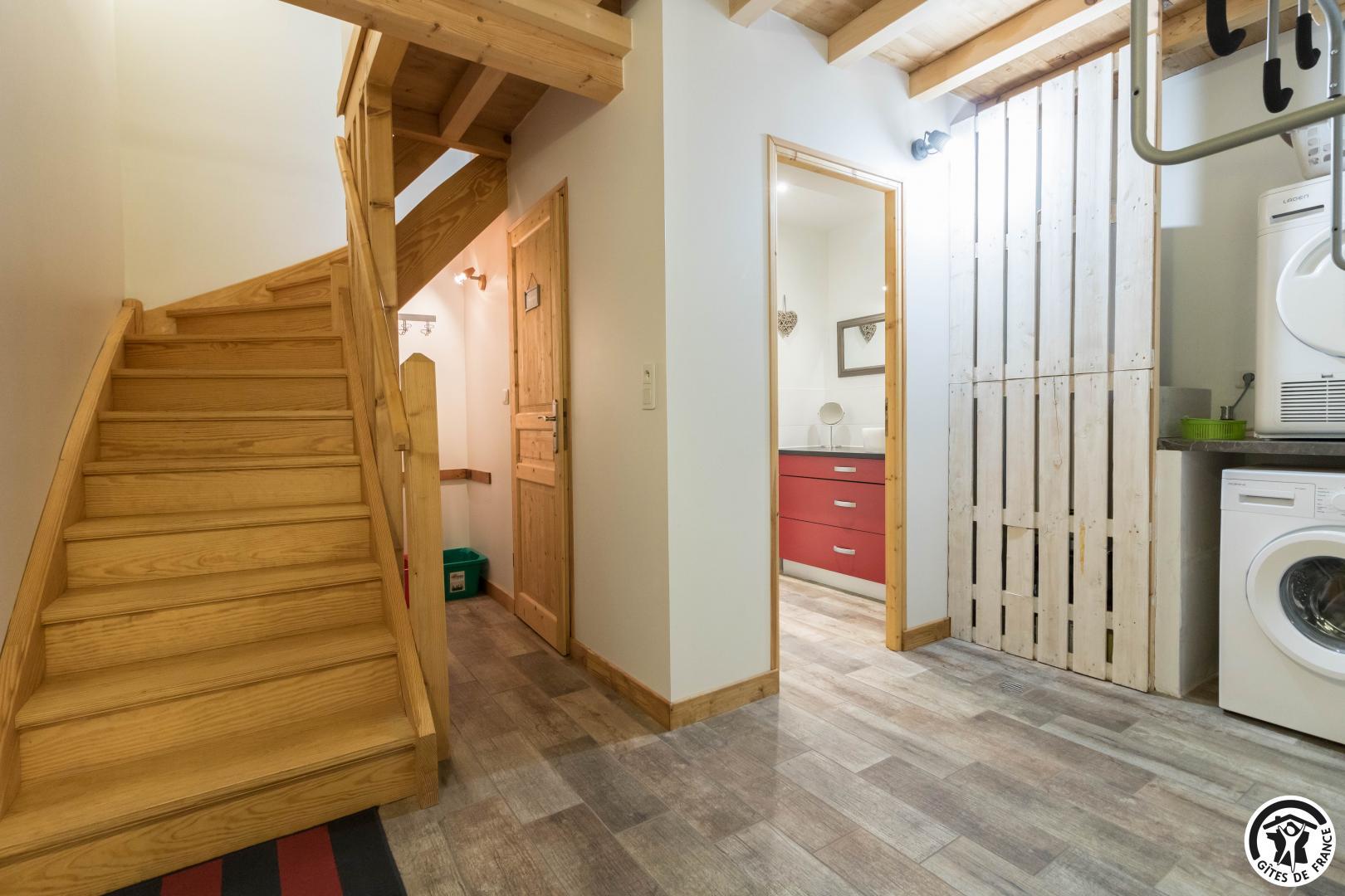 Au rez-de-chaussée : une chambre double (1 lit 2 personnes en 160×200), salle de bain avec douche italienne, WC, un espace de rangement vélos, une buanderie.