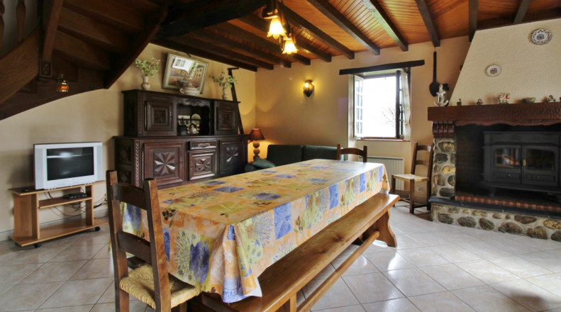 3 Chambres (3 lits 2 pl.), séjour, cuisine, salle d’eau, barbecue, abri voiture, salon de jardin. Pour bébé : lit, chaise haute. Chauffage électrique et bois. .