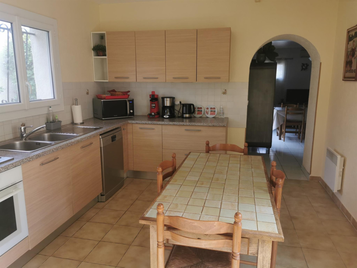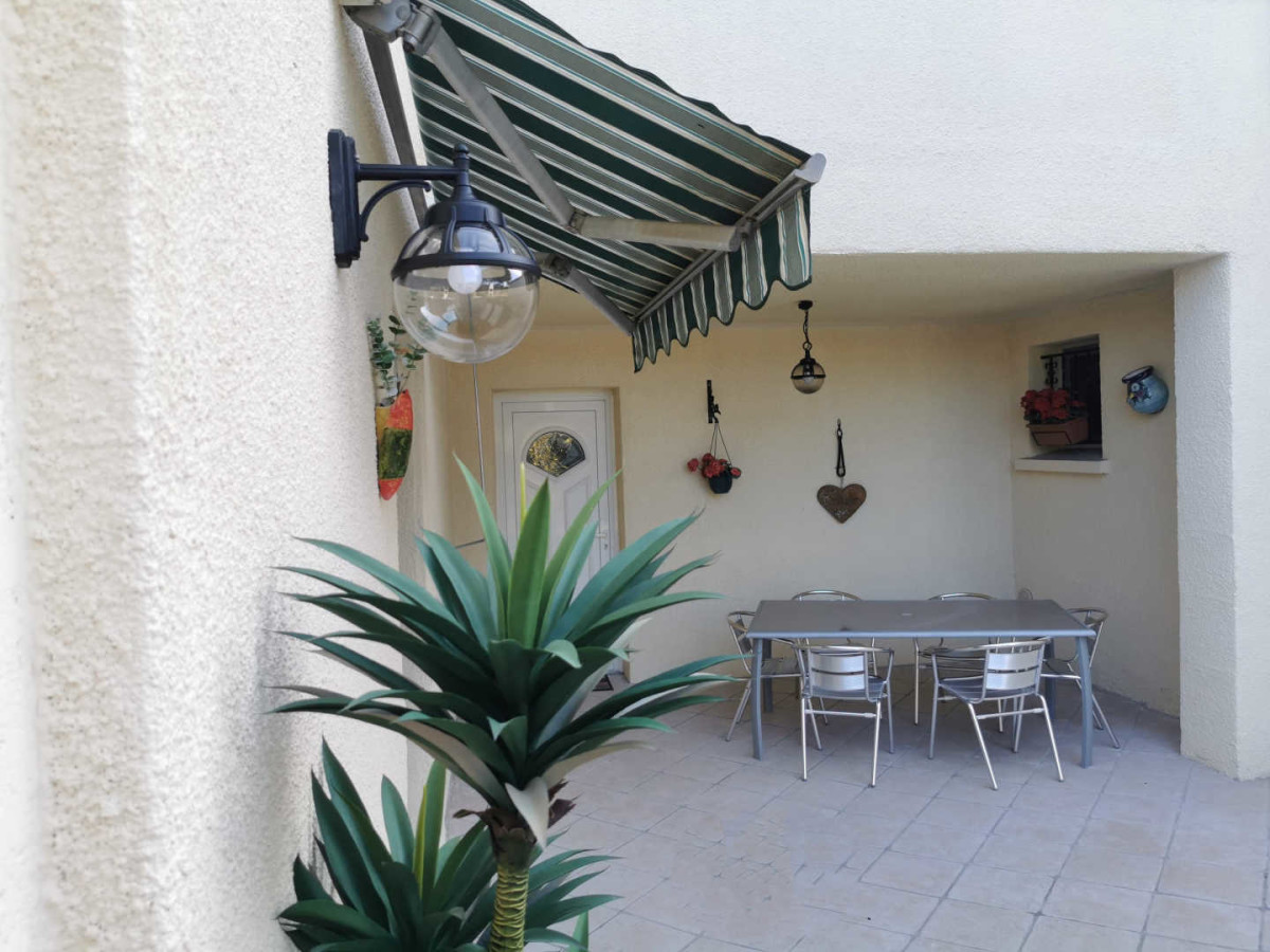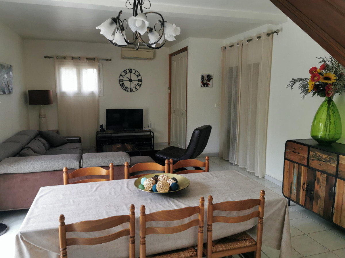 Rez-de-chaussée : cuisine, salle de séjour, salle d’eau , wc. 1er étage : Chambre 1 (1 lit 160 cm, placard, télé), Chambre 2 (soit 1 lit 180 cm, soit 2 lits 90 cm, placard, télé), Chambre 3 (1 lit 90 cm, terrasse solarium, armoire), s.d.b./wc, Chambre 4 (1 lit 90 cm, armoire). Chauffage électrique, climatisation, 3 TV, matériel bébé (lit parapluie, chaise haute, barrière pour escalier), possibilité location draps et ménage fin de séjour sur demande. Chauffage en supplément. Profitez de l’espace extérieur : 2 terrasses dont une couverte (27 et 20 m²) espace arboré, terrain de pétanque, salon de jardin, barbecue, abri couvert pour 1 voiture. Superficie de l’hébergement : 110 m². ATTRAITS TOURISTIQUES : Les plages (Les Aresquiers, Palavas…), Montpellier (ville culturelle et touristique), Sète (patrie de Georges Brassens, Paul Valéry).