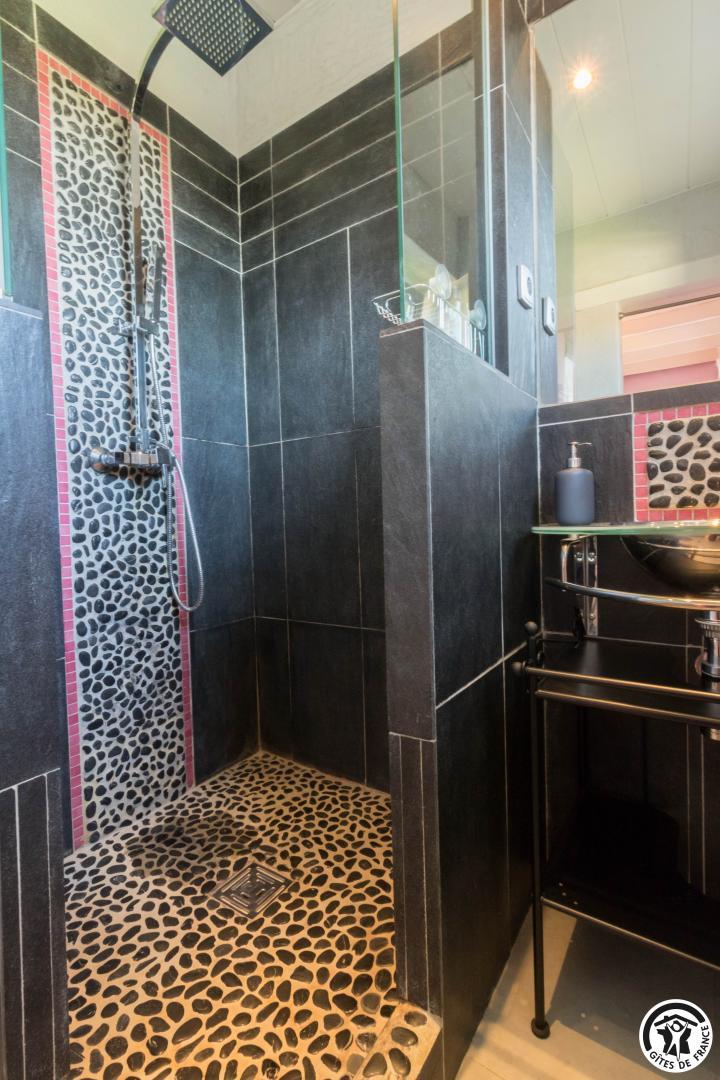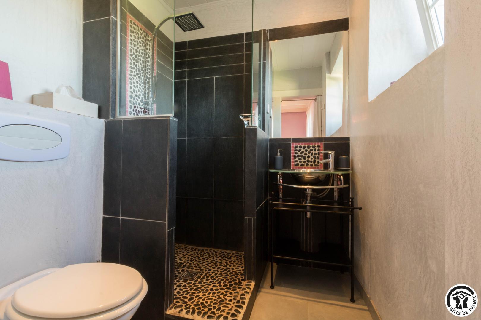 – à l’étage : 4 chambres disposant chacune d’une salle d’eau/WC privative et communicante. Chambre « Caramel » (1 lit double en 140cm), chambre « Sucre d’Orge » (1 lit double en 160cm + 2 lits simples en 90cm), chambre « Guimauve » (1 lit double en 160cm), chambre « Réglisse » (1 lit double en 140cm).