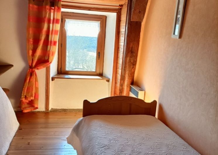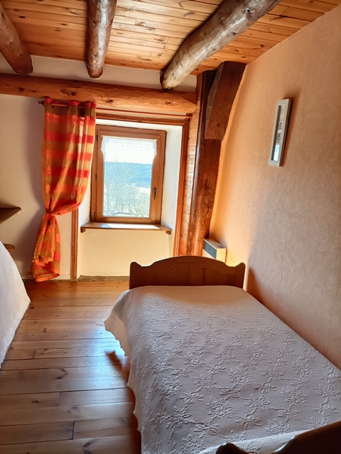 Maison traditionnelle rénovée. Tout confort. Idéal pour séjour au calme et pratique de la randonnée. PR au départ du village. Accès direct chemins de randonnées : GR65 et GR4, visite de Tourbières de Lajo. Réserve de Bisons d’Europe à 10 km. R-d-c : séjour, cuisine, poêle cheminée, banquette, 2 fauteuils, salle d’eau, WC. 1er ét : 1 ch. (1 lit 2 pl), 1 ch. (2 lits 1 pl convertibles en lit 160), 1 ch. (1 lit 1 pl), WC, lavabo, chauff électrique, L-L, L-V, M-O, congél, TV, tél (mobile sur demande), terrasse, salon de jardin, barbecue, grand jardin non clos, parking, draps fournis (lits faits),linge de toilette et accessoires puériculture à la demande.