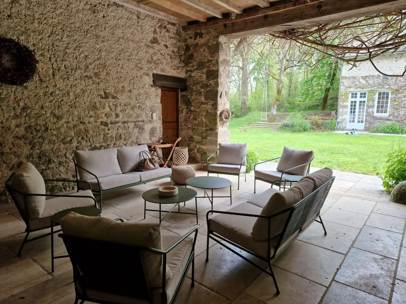 Ancienne ferme restaurée avec raffinement sur une propriété de 4 hectares arborés avec un ruisseau et une piscine de 11x3m.