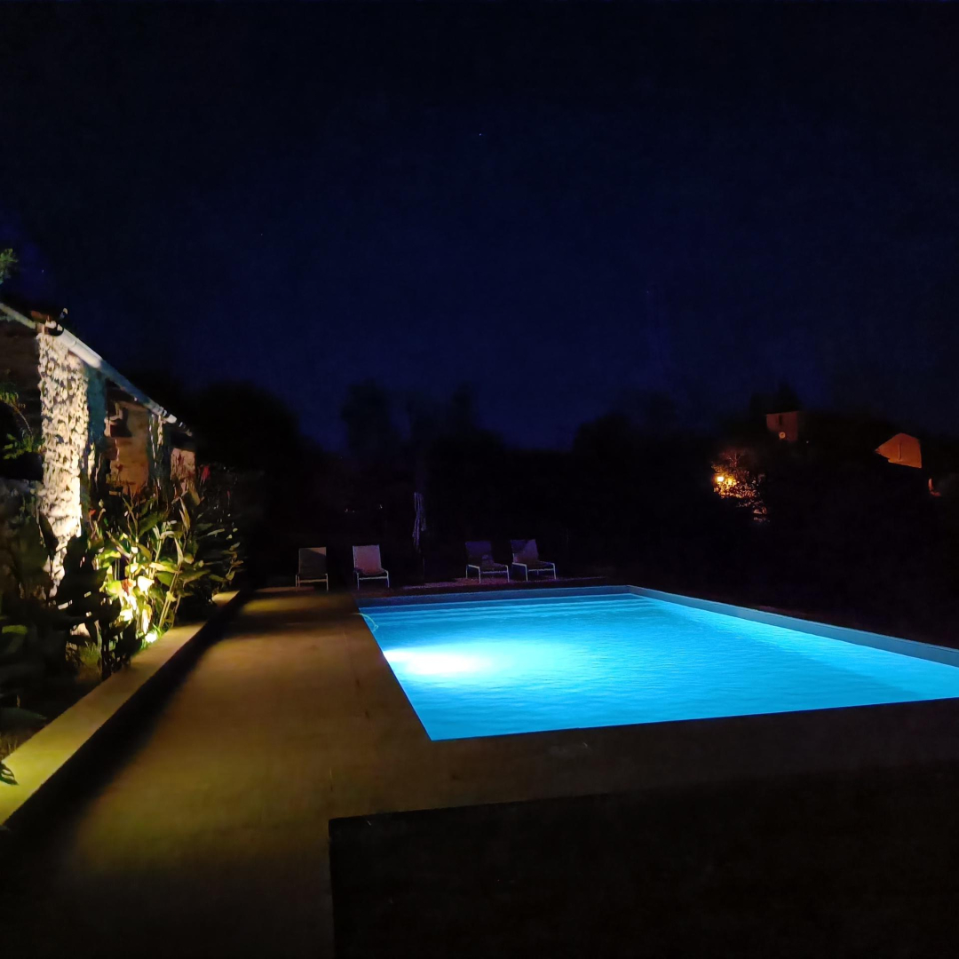 Piscine clôturée, ouverte d’avril à octobre en fonction de la météo, à partager avec les autres gîtes sur place : 10x5m avec une marche pataugeoire et 1,10 à 1,60 m de prof.