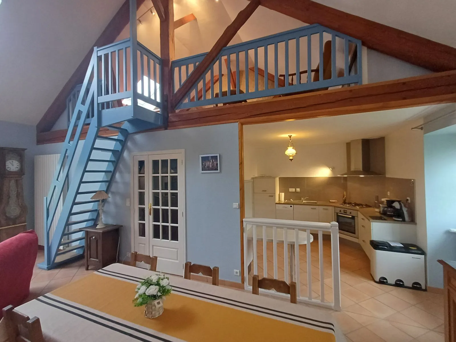 Ce gite est situé au 1er étage d’une grande bâtisse caussenarde qui abrite un autre gite au rez-de-chaussée (entrée indépendante). Il se compose d’un coin cuisine équipé et d’un séjour avec télévision. Deux chambres sont à votre disposition : 1 première avec un lit 140 et une seconde en mezzanine avec 1 lit 140 et 1 lit 90 séparé par un rideau. Vous trouverez également sur la mezzanine un salon TV.