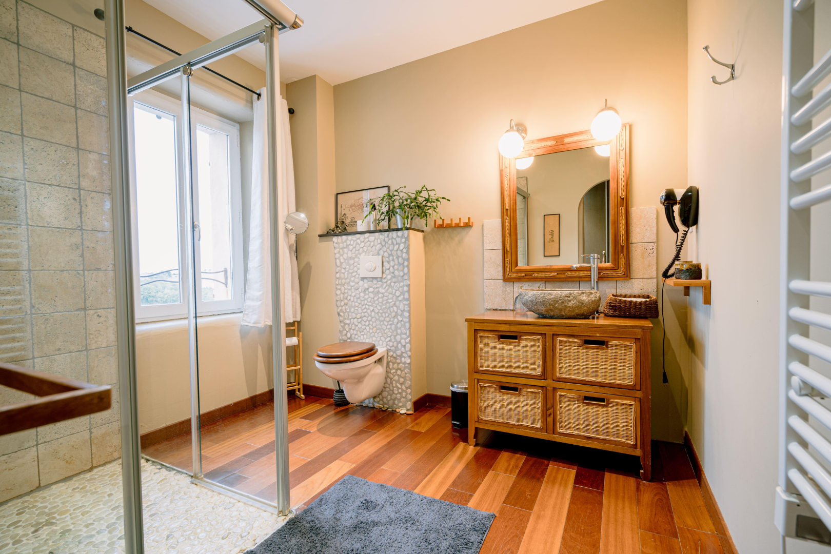 La Grande Oasis, une belle maison, avec un impressionnant salon donnant sur les vallons environnants. Le patio donne une touche intimiste, il est surmonté d’une terrasse panoramique… Philippe vous propose quatre chambres dans sa maison, deux en rez-de-chaussée, et deux à l’étage, chacune avec sanitaires privatifs. Equipement bébé sur demande. Piscine couverte, chauffée à l’année, jacuzzi et sauna .