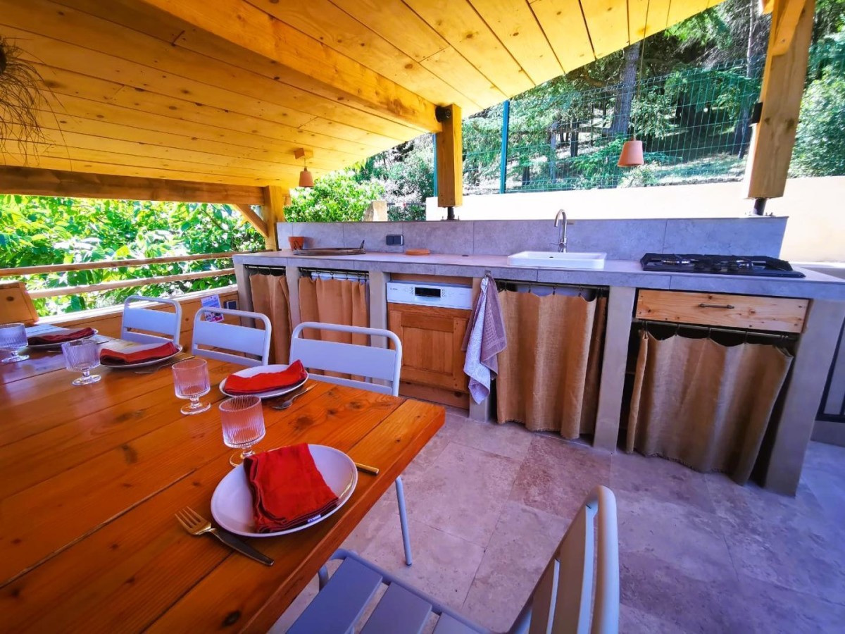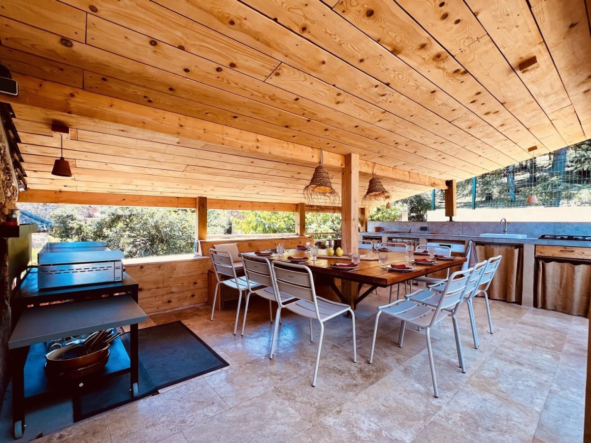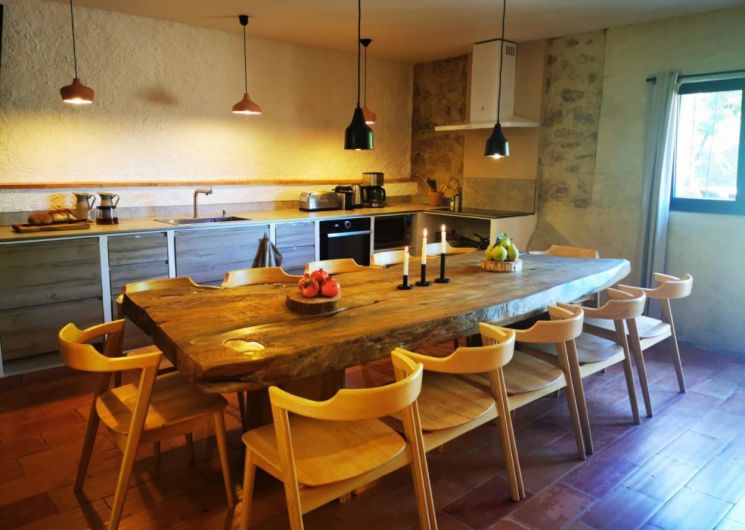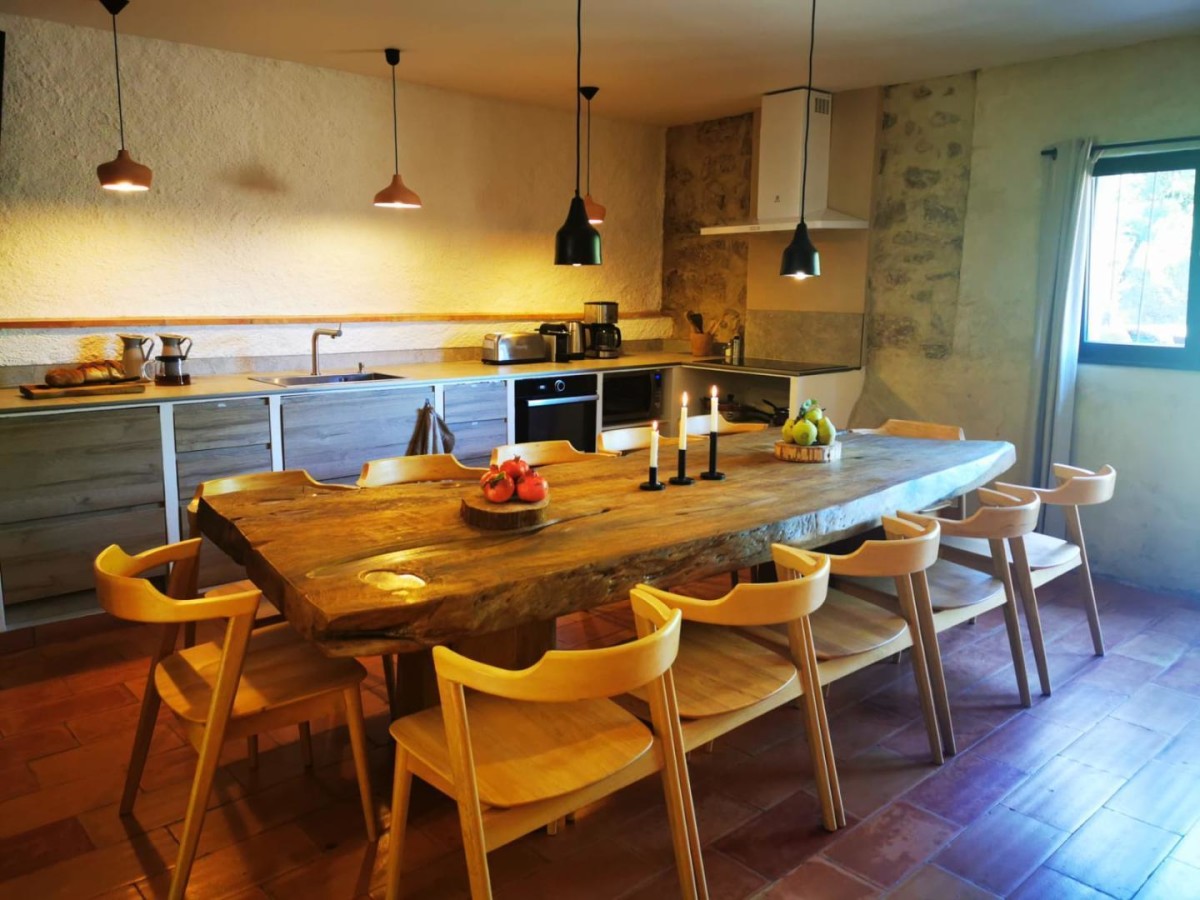 Cette belle maison ancienne (approx. 18ième siècle) en pierre, très atypique, est située au bord du Lac du Salagou (site exceptionnel, classé Grand Site de France, Natura2000), idéale pour découvrir la région. Niché dans un hameau caché au milieu d’un endroit naturel magnifique, cette perle rare très ancienne, vous séduira avec ses différences de niveaux, tomettes au sol et pierres. Vous trouvez la beauté de l’ancien accompagnée du confort d’aujourd’hui. Vous pourrez profiter d’un agréable séjour avec table à manger et cuisine entièrement équipée (four, micro-ondes, lave-vaisselle, lave-linge, réfrigérateur avec congélateur…) au rez-de-chaussée. Reposez-vous dans une des quatre belles chambres, dont trois avec lits doubles en 160×200 cm et une avec deux lits simples 80x200cm. Trois salles d’eau seront également à votre disposition. Vous apprécierez particulièrement son jardinet avec piscine et cuisine extérieure ainsi que sa terrasse panoramique offrant une vue magnifique sur le lac et la montagne. En hiver, retrouvez-vous auprès du poêle à bois (seulement de novembre à février, avec une quantité de bois fourni limitée, pour plus un supplément de 40€ sera facturé) après une bonne randonnée au lac ou sur le Mont Liausson. Amusez-vous au billard et baby-foot dans une salle de détente spécialement aménagée ! Vous pourrez vous garer de façon privative à une voiture derrière le gîte (passage étroit) ou gratuitement dans les ruelles du hameau. Dans cette maison jusqu’à 8 personnes, vous vous sentirez en vacances en tout saison ! Nous accueillons aussi les petites entreprises qui souhaite faire un séminaire ou teambuilding. Bienvenue!