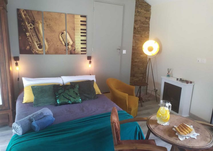 Gîte à l’étage pour deux personnes, esprit loft, on y accède par un escalier extérieur et une terrasse confortable, pour vous détendre au soleil. Sous celle-ci, un spa gonflable avec un coin lounge privatif et cocooning vous est dédié et entièrement fermée et à l’abri des regards. Le spa fonctionne toute l’année