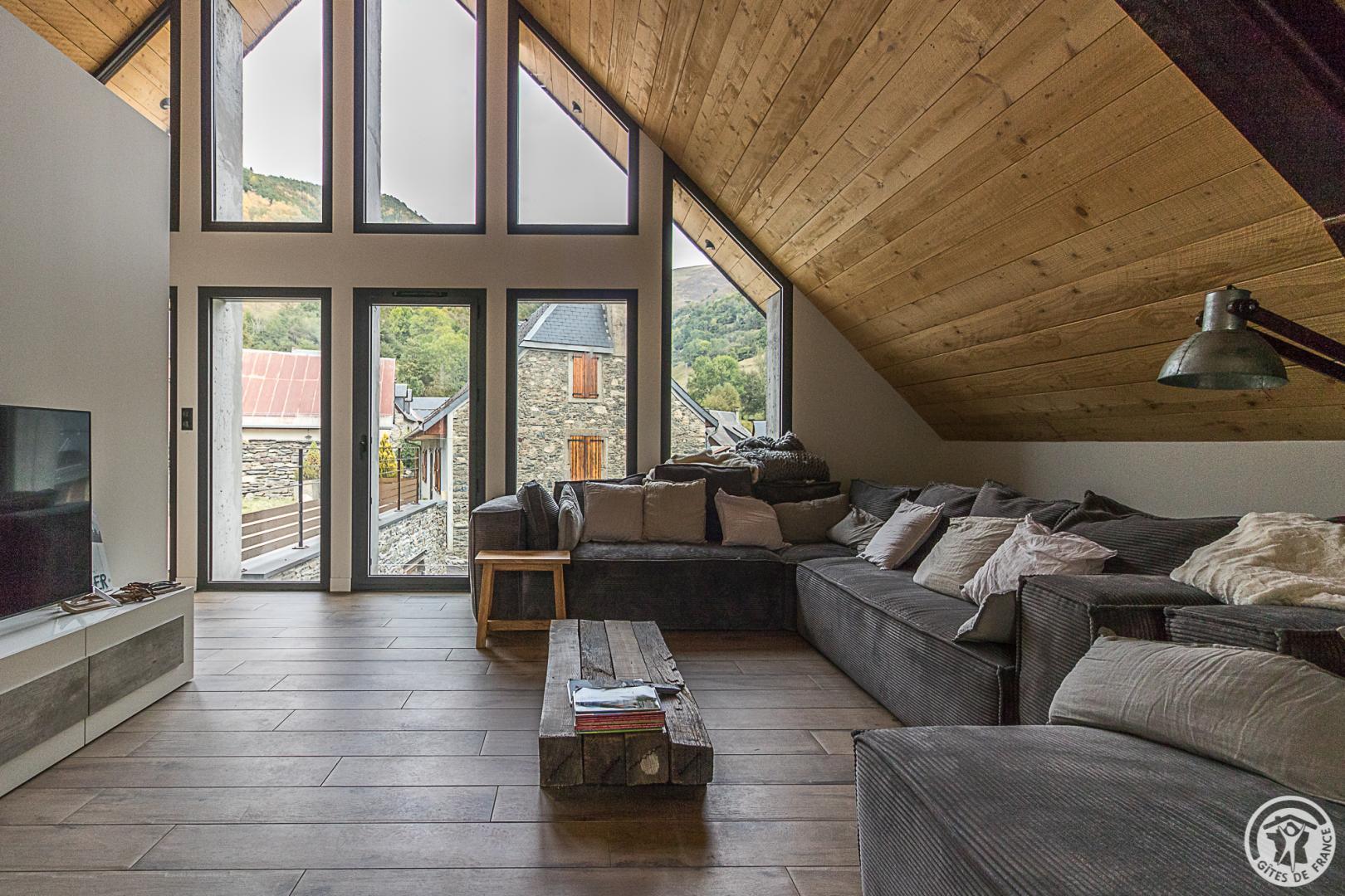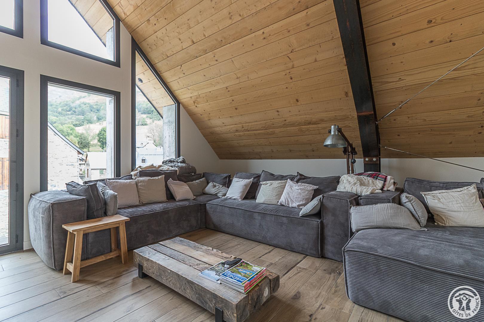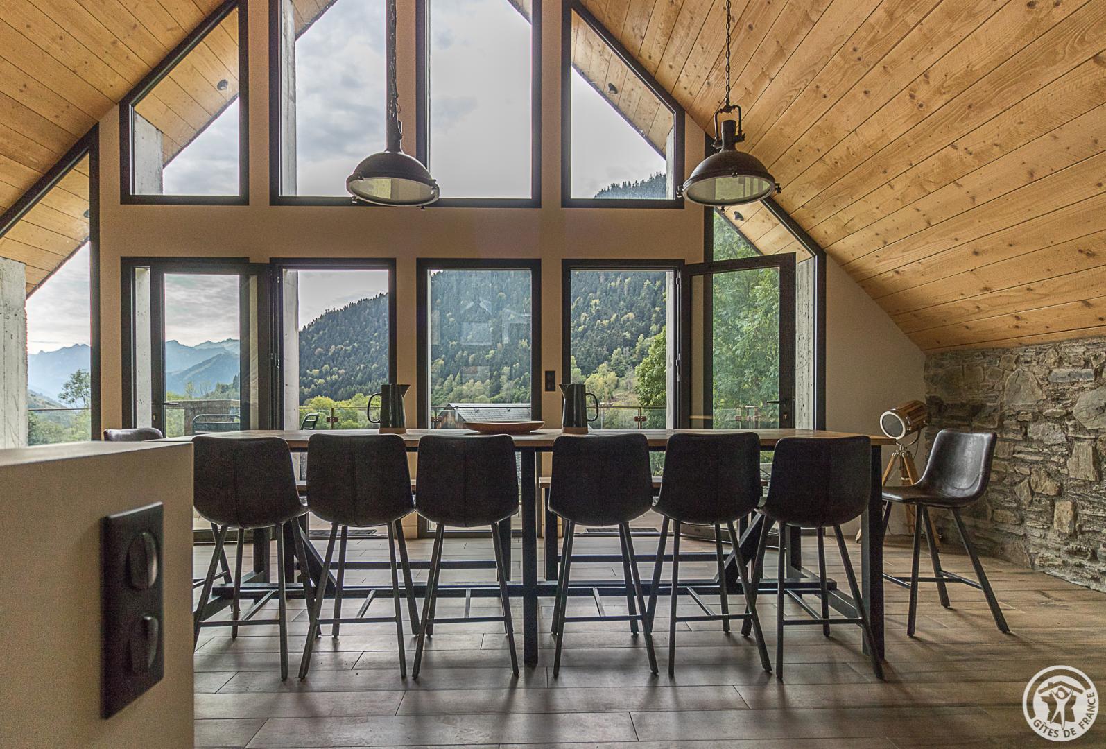 Ancienne grange superbement restaurée au coeur de la vallée d’Oueil. Vue imprenable ! Gîte pour 12 personnes idéal pour des week-ends ou des vacances en famille
