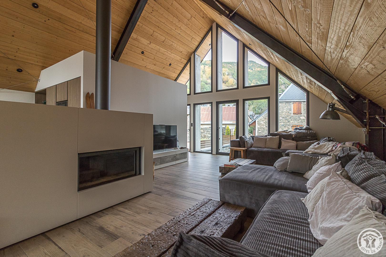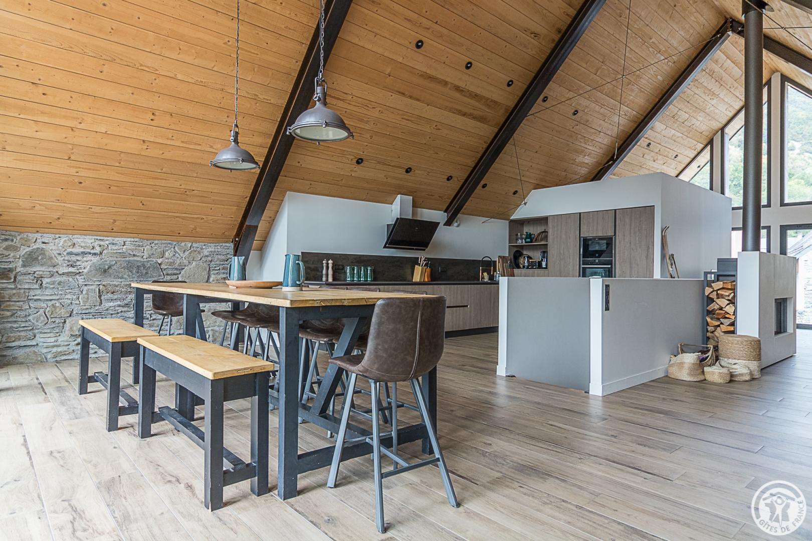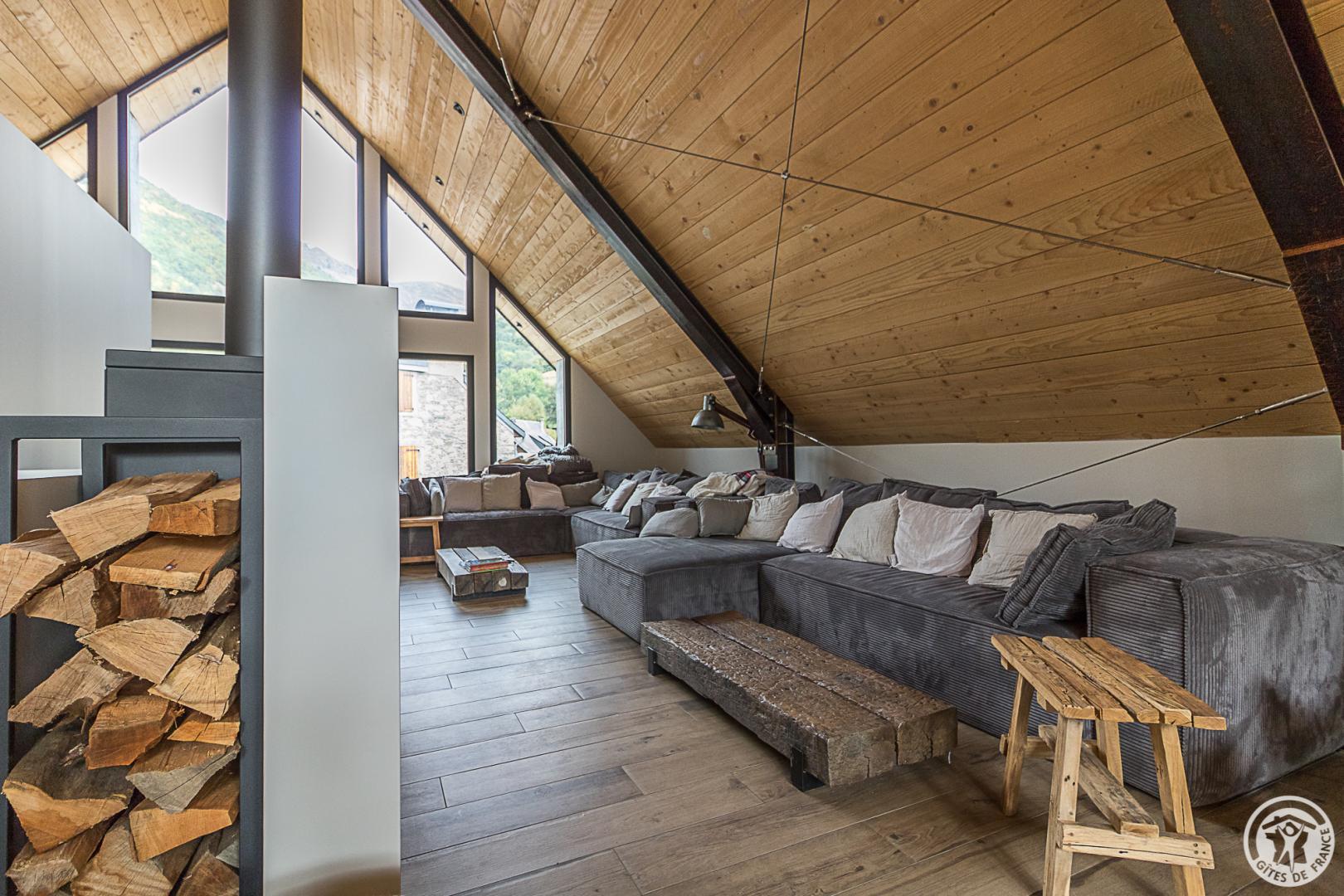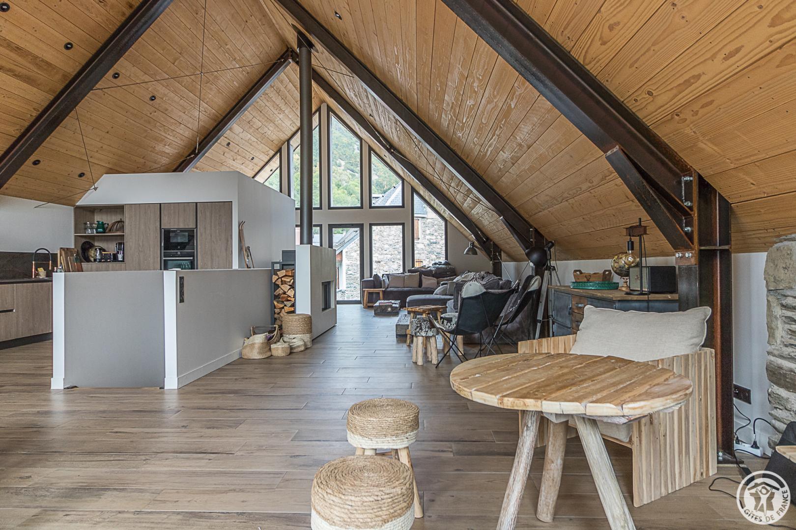 Ancienne grange superbement restaurée au coeur de la vallée d’Oueil. Vue imprenable ! Gîte pour 12 personnes idéal pour des week-ends ou des vacances en famille