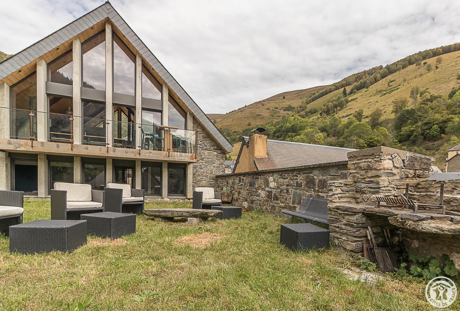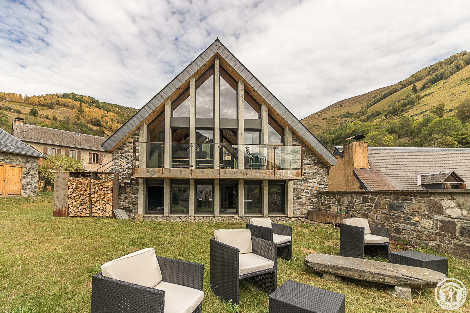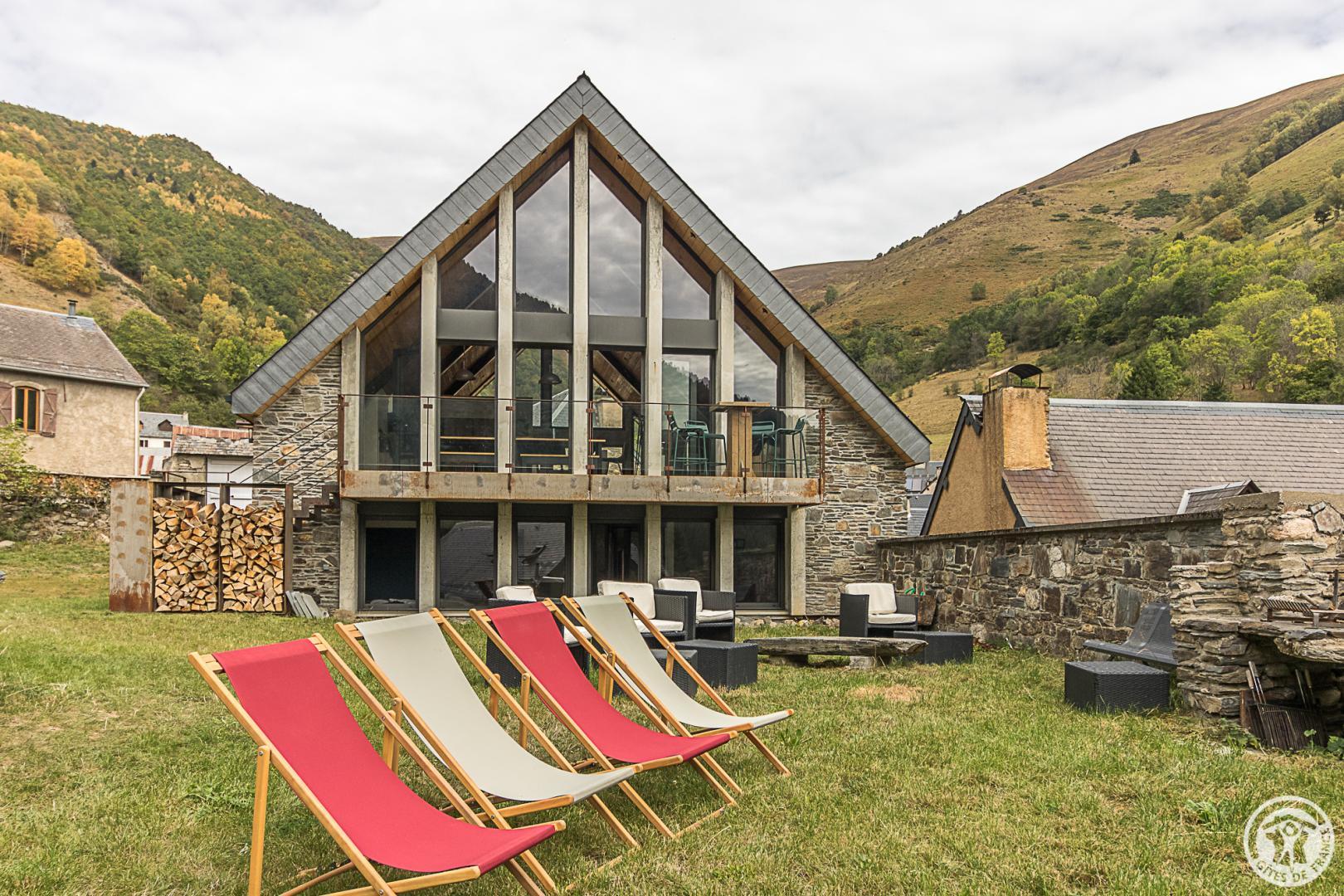 Idéalement située dans le joli village de Mayrègne, en vallée d’Oueil, à 11km au-dessus de Luchon, La Grange de Mayrègne vous accueille pour des séjours au vert, au calme, permettant toutes les activités de pleine nature. Vous aimerez vous y retrouver en famille, le temps d’un week-end ou pour vos vacances, et profiter de son emplacement exceptionnel face à la vallée et aux pics luchonnais. Le panorama sur la montagne depuis le jardin ou le séjour largement vitré est inoubliable. La grange, superbement restaurée met à l’honneur le bois et la pierre, conservant l’esprit du lieu tout en lui apportant confort et modernité.
