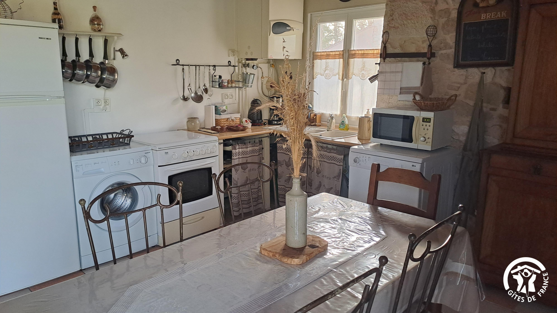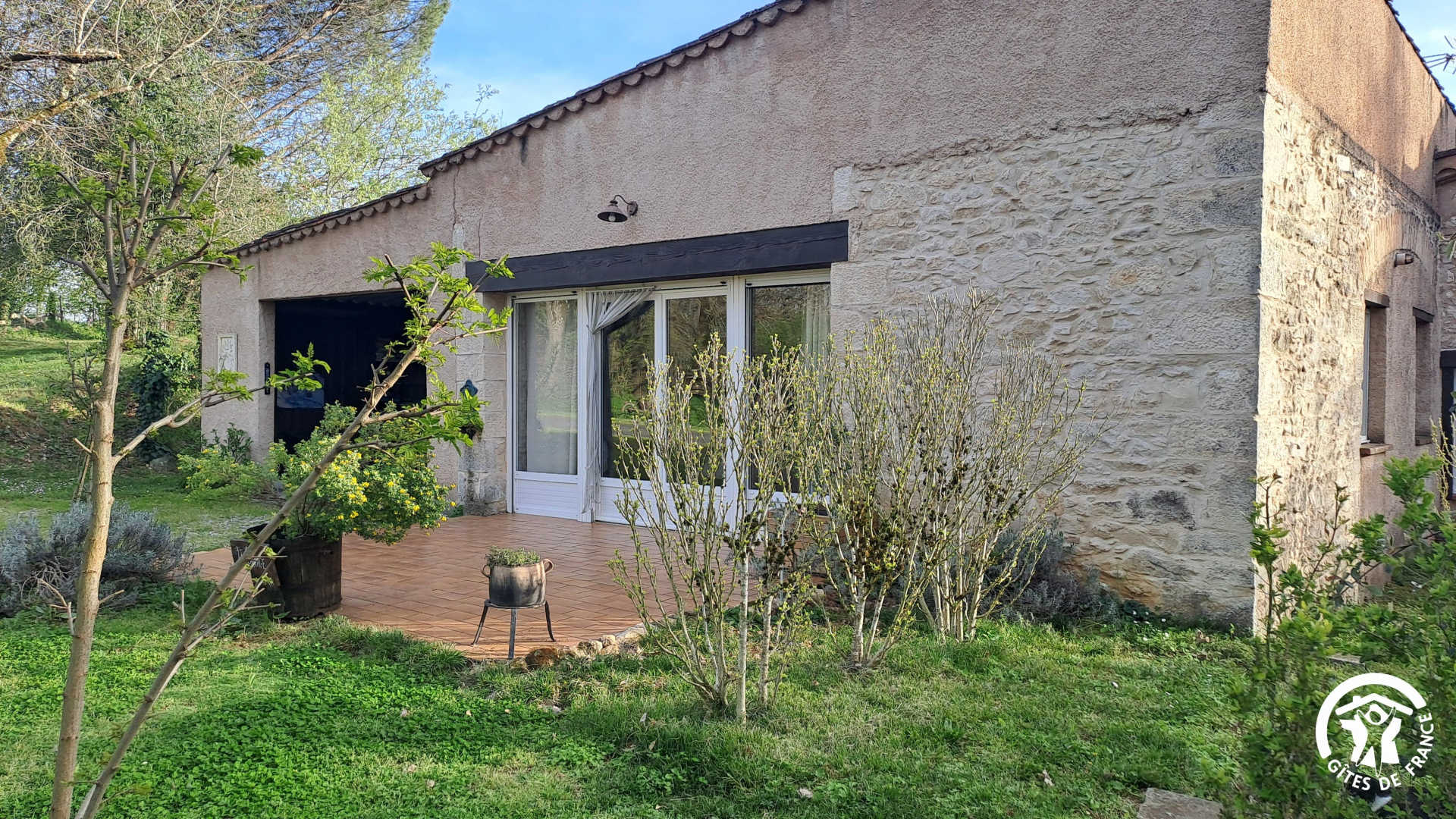Gîte la Grange du Rouyre, mitoyen sur l’arrière au gîte le « Pigeonnier » (référence G1412 sur Gîtes de France), et non loin de la maison des propriétaires. Le gîte dispose d’une terrasse privative sans vis à vis.