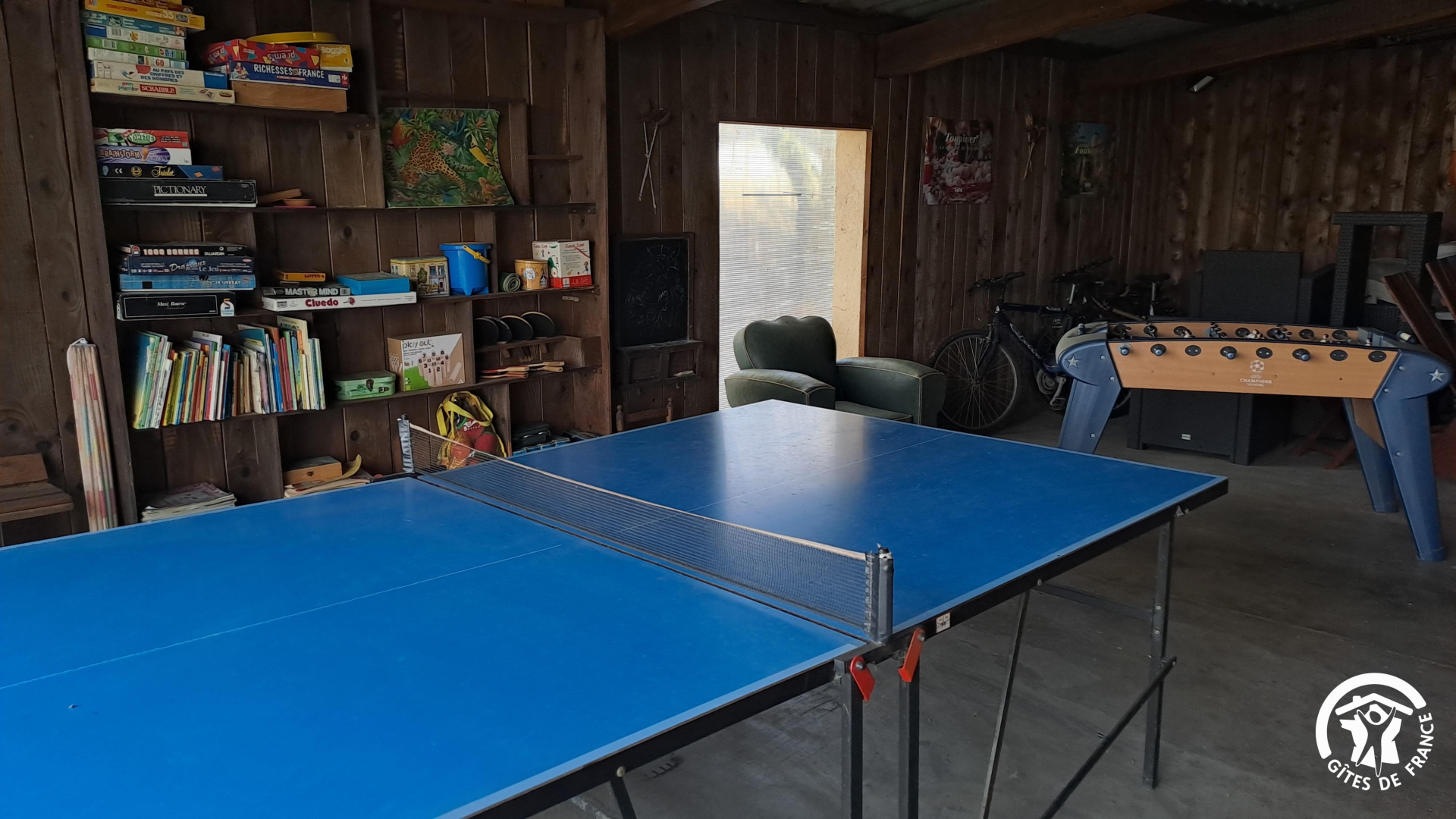 Piscine couverte à partager, salle de jeux commune aux deux gites avec ping-pong, baby-foot, jeux enfants, jeux de société, vélos à disposition.
