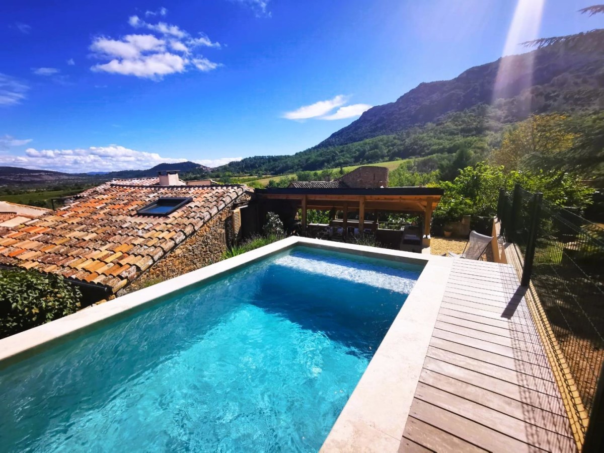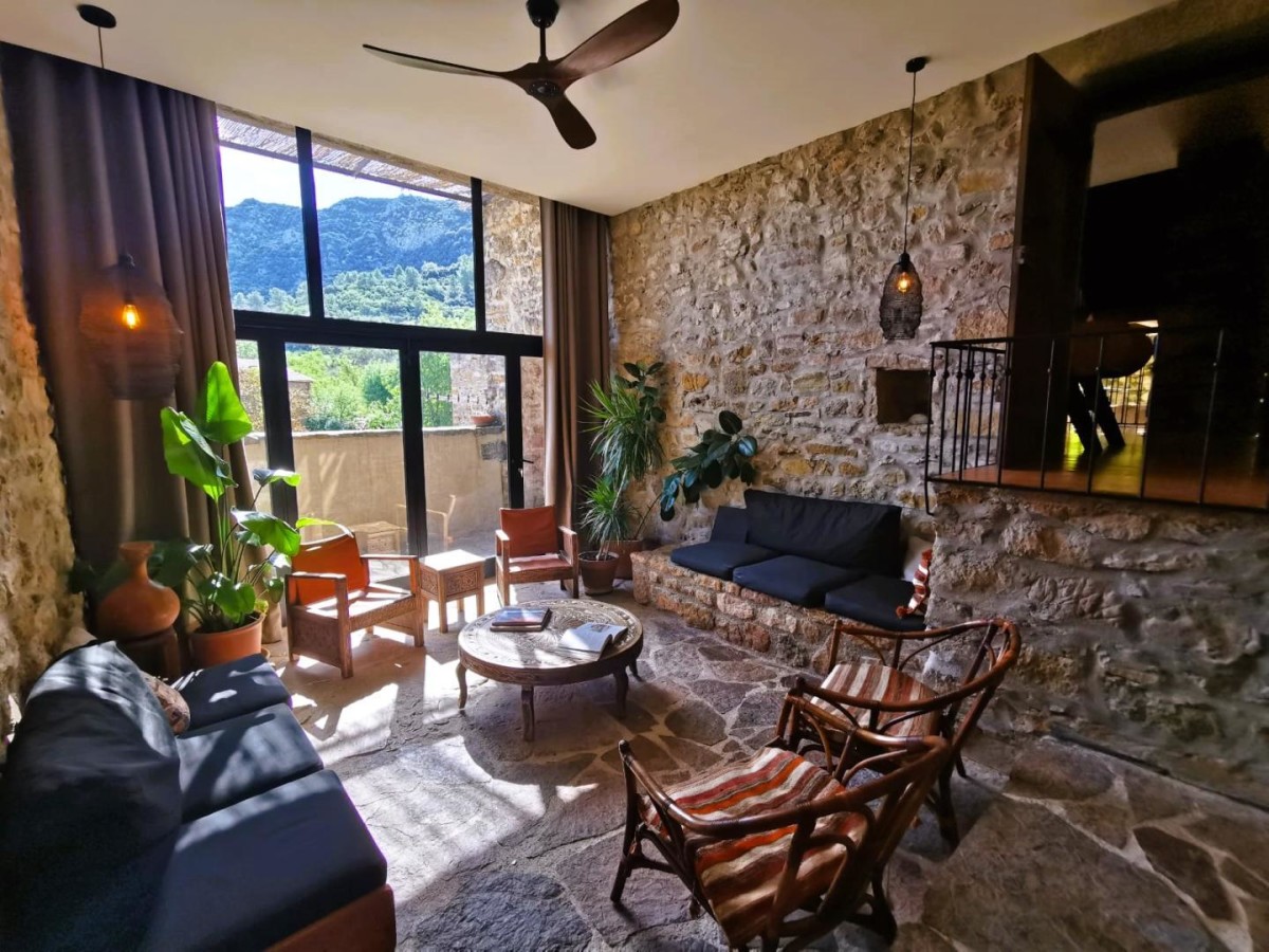 Cette belle maison ancienne (approx. 18ième siècle) en pierre, très atypique, est située au bord du Lac du Salagou (site exceptionnel, classé Grand Site de France, Natura2000), idéale pour découvrir la région. Niché dans un hameau caché au milieu d’un endroit naturel magnifique, cette perle rare très ancienne, vous séduira avec ses différences de niveaux, tomettes au sol et pierres. Vous trouvez la beauté de l’ancien accompagnée du confort d’aujourd’hui. Vous pourrez profiter d’un agréable séjour avec table à manger et cuisine entièrement équipée (four, micro-ondes, lave-vaisselle, lave-linge, réfrigérateur avec congélateur…) au rez-de-chaussée ainsi que d’un salon avec canapé et télévision, et une deuxième petite cuisine donnant sur la terrasse au premier étage. Reposez-vous dans une des six belles chambres, dont quatre avec lits doubles en 160×200 cm, une avec deux lits simples 80x200cm et une en mezzanine avec deux lits simples, idéal pour un enfant. Quatre salles d’eau seront également à votre disposition. Vous apprécierez particulièrement son jardinet avec piscine et cuisine extérieure ainsi que sa terrasse panoramique offrant une vue magnifique sur le lac et la montagne. En hiver, retrouvez-vous auprès du poêle à bois (seulement de novembre à février, avec une quantité de bois fourni limitée, pour plus un supplément de 40€ sera facturé) après une bonne randonnée au lac ou sur le Mont Liausson. Amusez-vous au billard et baby-foot dans une salle de détente spécialement aménagée ! Vous pourrez vous garer de façon privative à une voiture derrière le gîte (passage étroit) ou gratuitement dans les ruelles du hameau. Dans cette maison jusqu’à 12 personnes, vous vous sentirez en vacances en tout saison ! Nous accueillons aussi les petites entreprises qui souhaite faire un séminaire ou teambuilding. Bienvenue!