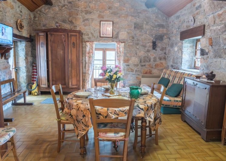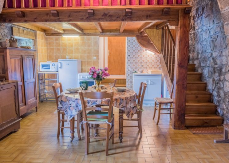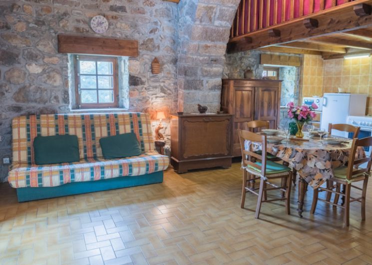 A proximité des grottes de l’Aven Armand et de Dargilan. Point d’observation des vautours. Gîte dans une maison indépendante, dominant la Jonte. Coin cuisine (micro ondes), coin séjour (clic-clac (2 places) TV. 1 mezzanine sous voute (1 lit 2 places). Salle d’eau, WC. Lave-linge, chauffage électrique, terrasse. En bordure de route.