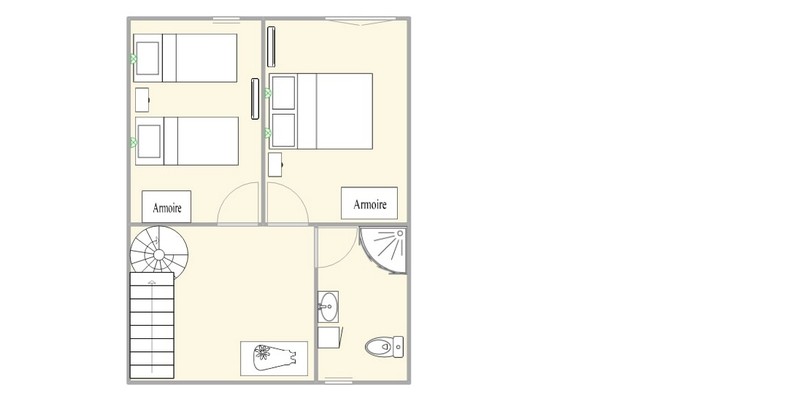 Maison de 50 m² avec jardin clos de 40 m² sans vis à vis. Au rez-de-chaussée : une cuisine équipée (réfrigérateur/congélateur 240L, fer et table à repasser, cafetière et four électrique, micro-onde, plaque 4 feux au gaz, 1 table et 6 chaises, un canapé 3 places), télévision écran plat, lave-linge, équipement bébé (baignoire, matelas à langer, chaise haute et lit), WC. Jardin clos avec salon de jardin 6 places et barbecue. 1er étage : une chambre avec 2 lits de 90 cm, une chambre avec 1 lit de 140 cm et une salle d’eau avec douche, lavabo, bidet et wc. La mezzanine : 2 lits de 90 cm et une table pour jouer. Cet espace est réservé aux enfants ou adolescents. Accepte un animal de compagnie de petite taille avec un supplément de 3 €/jour. Chauffage électrique compris. Parking commun situé à 50m de la maison.
