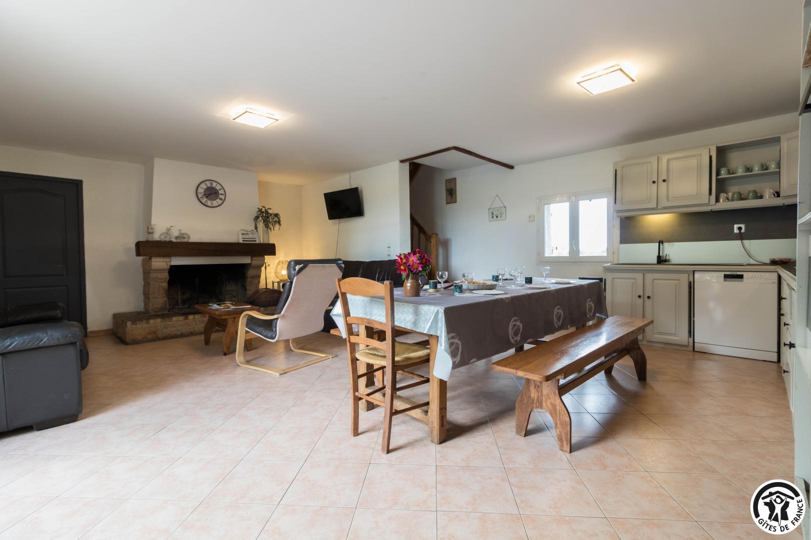Rez-de-chaussée : grand séjour avec coin détente et cuisine ouverte, 3 chambres (2 lit 1 personnes en 90cm) (1 lit 2 personnes en 140cm) (2 lits gigogne 1 personne en 90cm), salle d’eau/WC. Buanderie. A l’étage : 2 chambres (1 lit 2 personnes en 140cm) (2 lits 1 personne en 90cm), salle de bains, WC. Possibilité lit d’appoint en 90. Matériel bébé. Accès Internet wifi. Chauffage central au fuel.