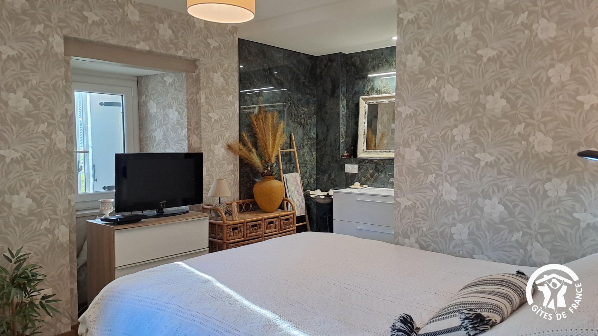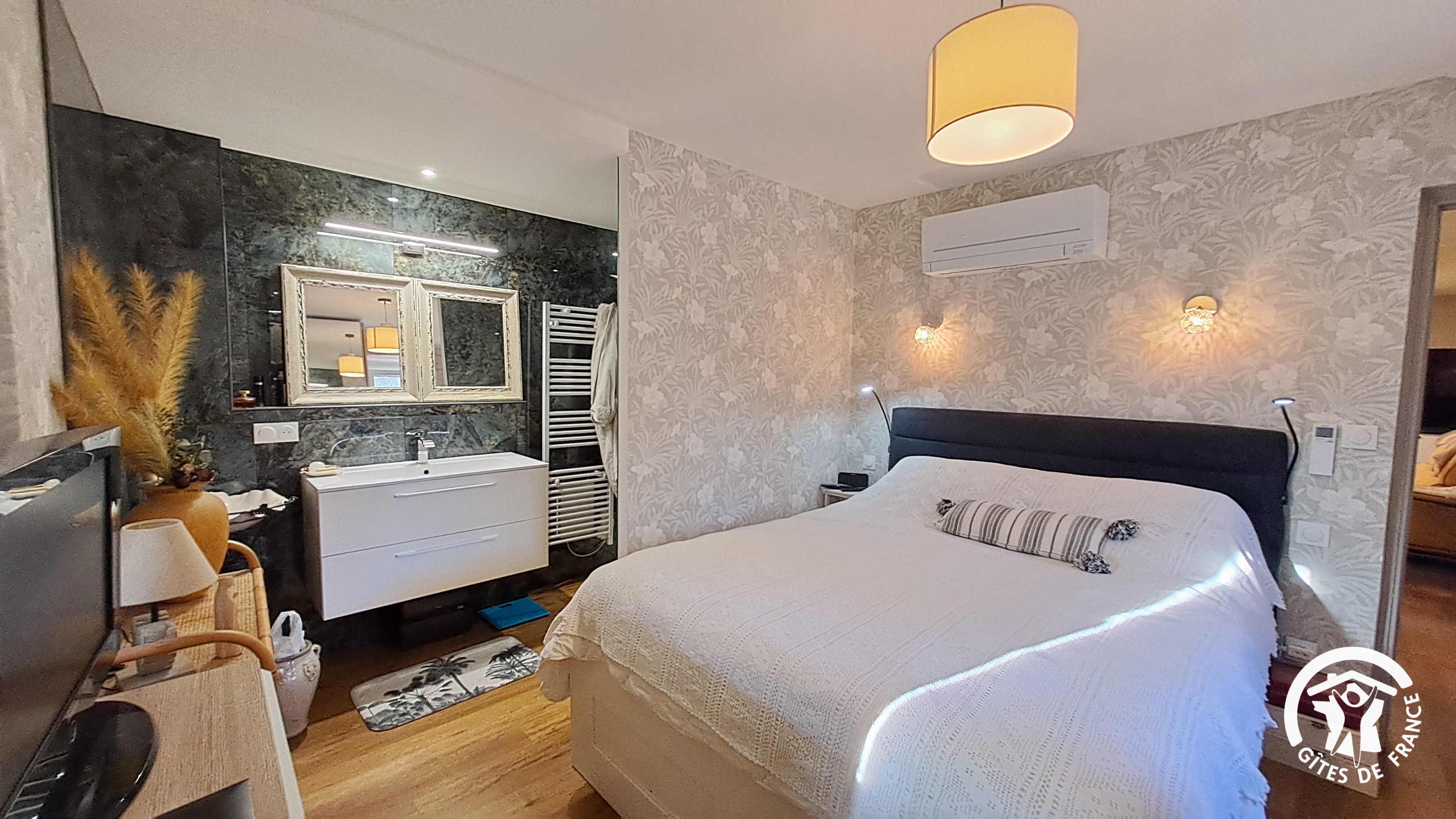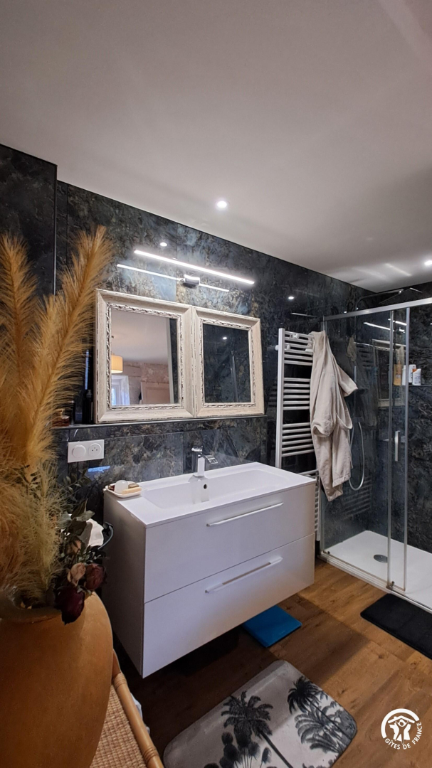 – chambre avec lit en 160x200cm et salle d’eau privative (grande vasque et douche)