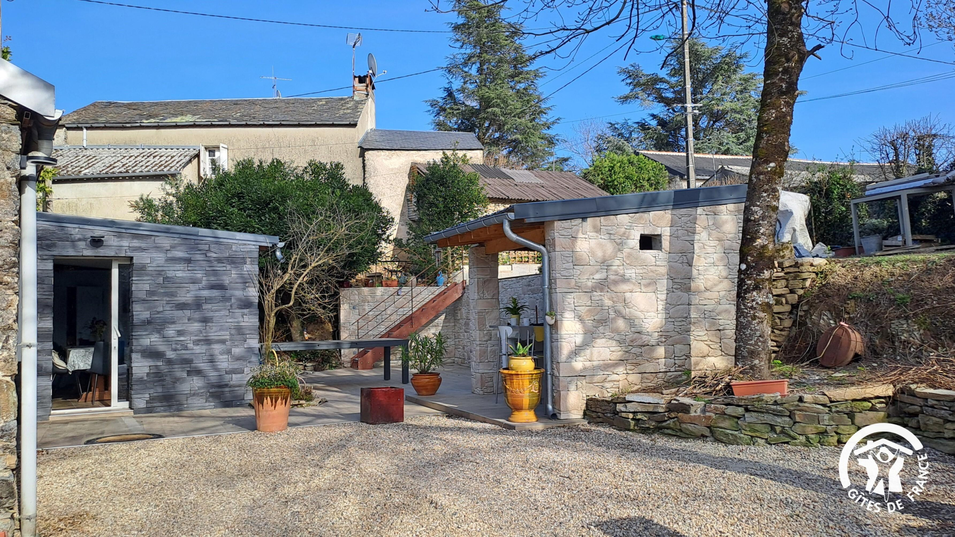Extérieurs : graviers et terrasses, terrain fermé et sécurisé par portail avec possibilité de garer une voiture dans la cour. Un espace terrasse couverte avec barbecue, plancha et mange-debout. Une seconde terrasse surélevée pour profiter du soleil !