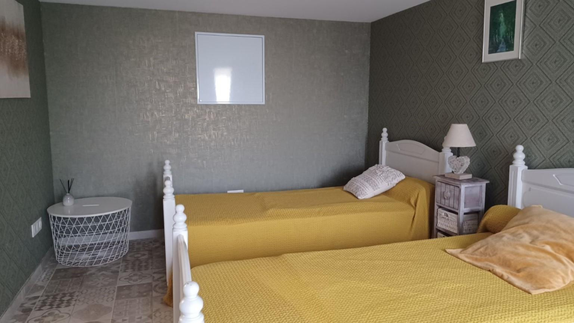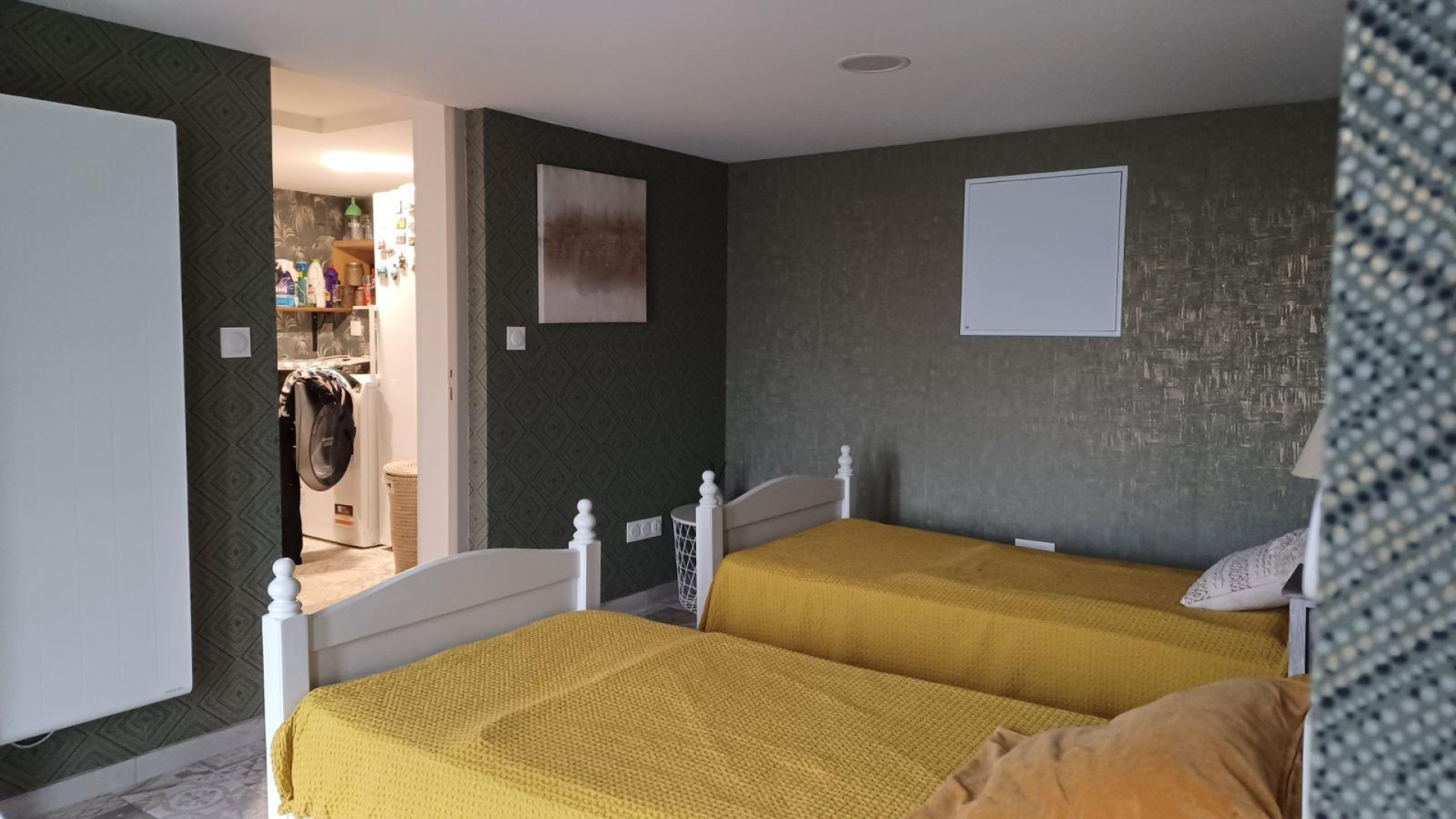 – chambre avec 2 lits simples. Depuis cette chambre, accès au petit couloir avec salle d’eau (douche, vasque et wc) et seconde chambre en enfilade avec lit double en 140x190cm.