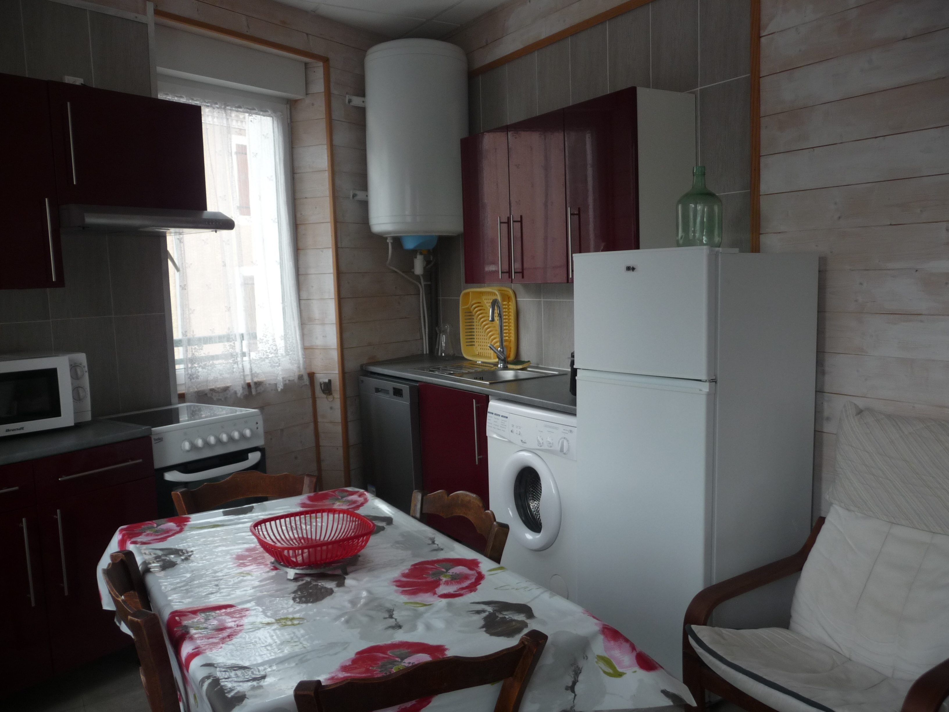 Appartement T3 (40 m²) situé au 1er étage d’une maison comprenant plusieurs locations. 1 appartement 2 chambres (lit 2 places) +1 sejour (TV écran plat) / Salle à manger, cuisine avec frigo-congélateur, cuisinière et four vitro céramique, micro-onde, cafetière électrique, fauteuil, 1wc, 1 salle de douche. Au RDC : jardin commun aux locataires avec salon jardin et bain de soleil. 2 chèques de caution à verser à l’arrivée : 300 € + caution ménage : 60 €. Arrivée dans l’après-midi. Départ à 11h00.