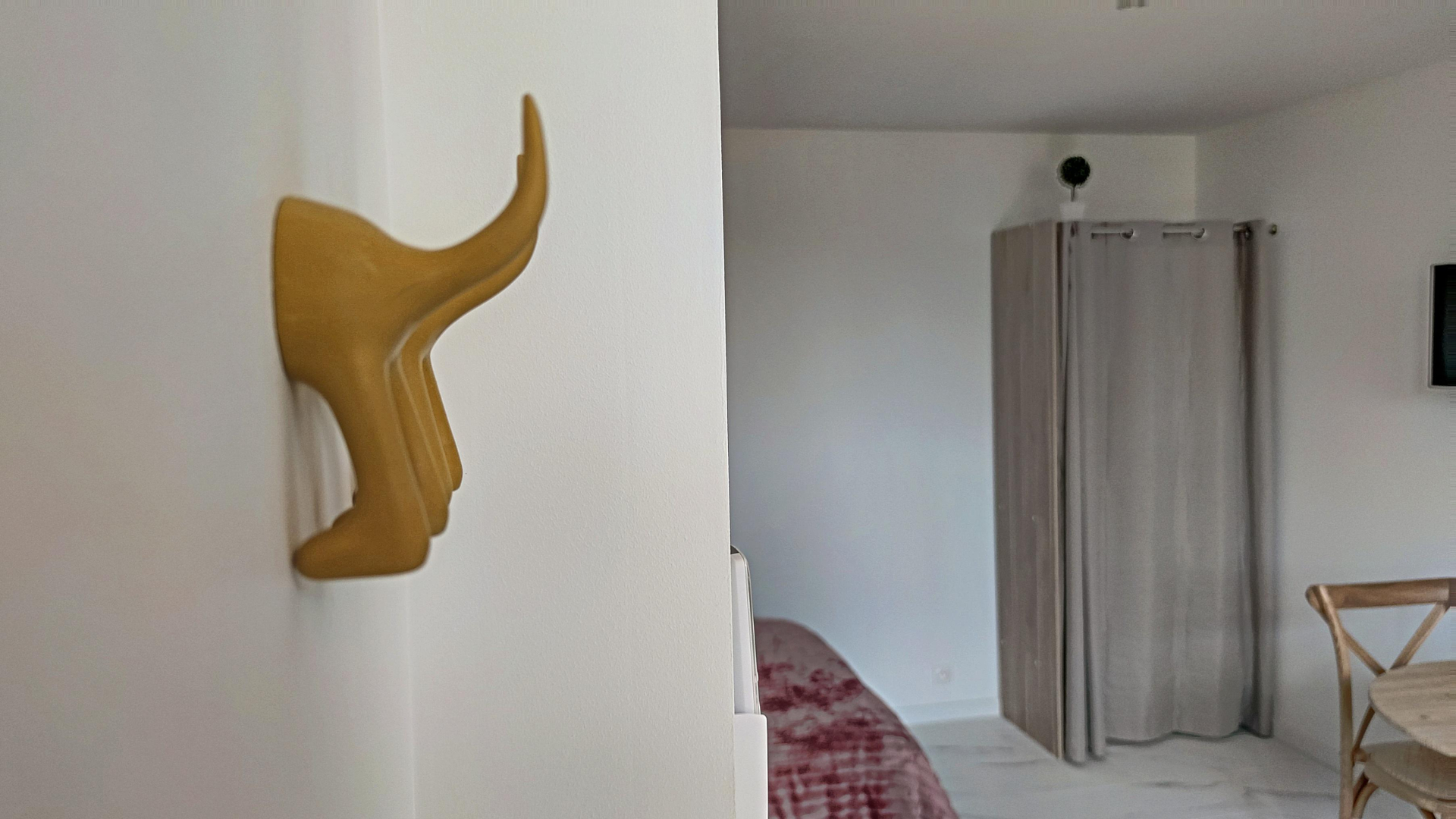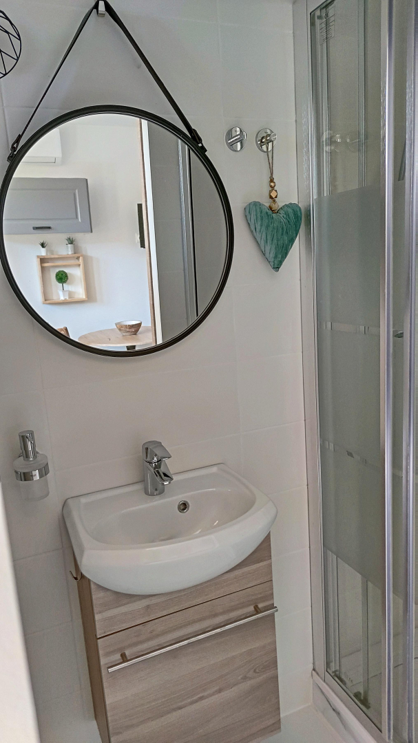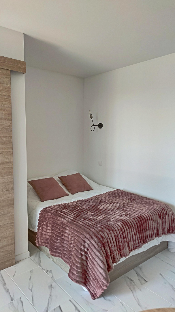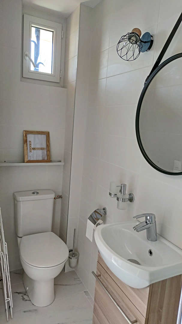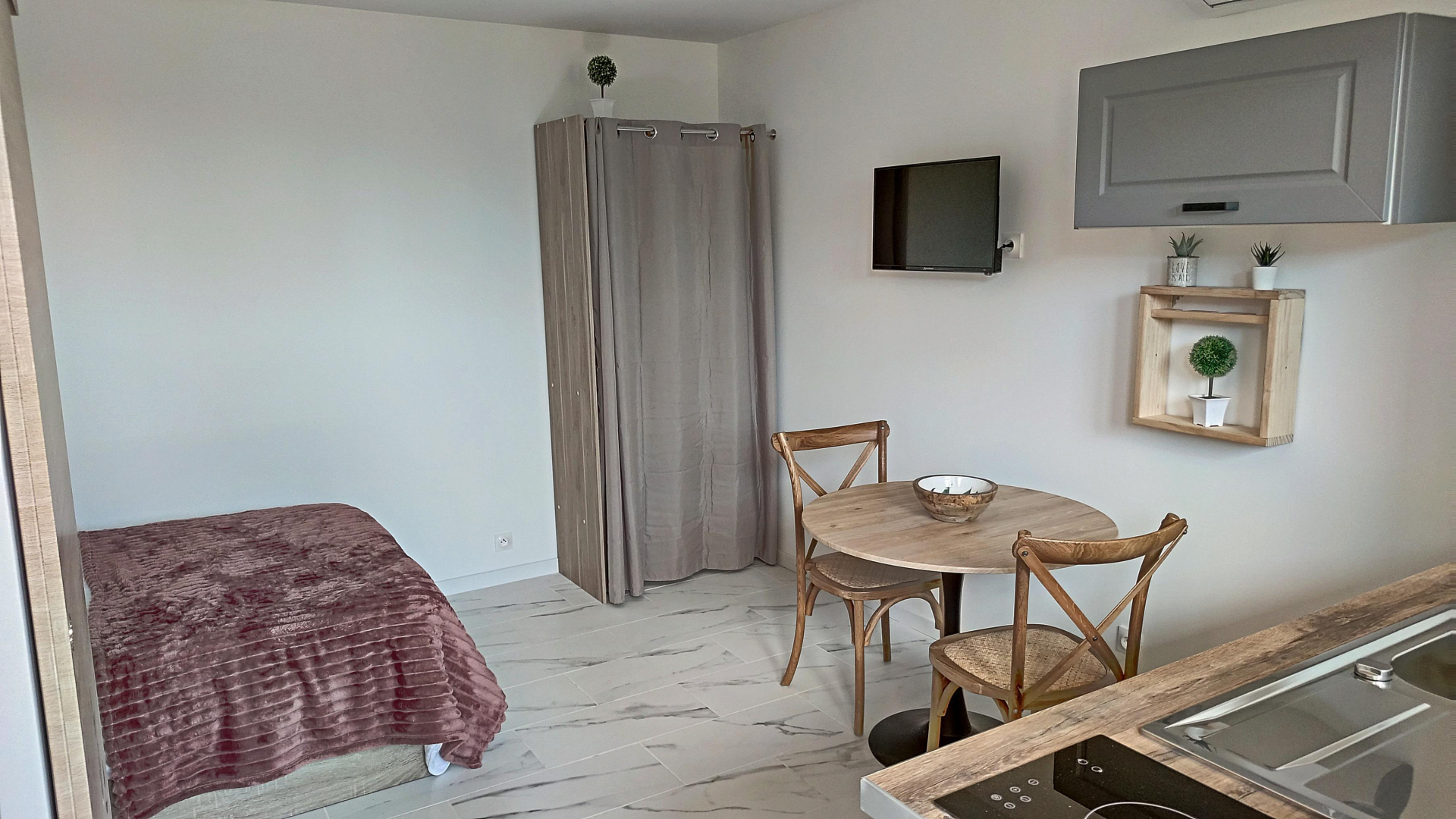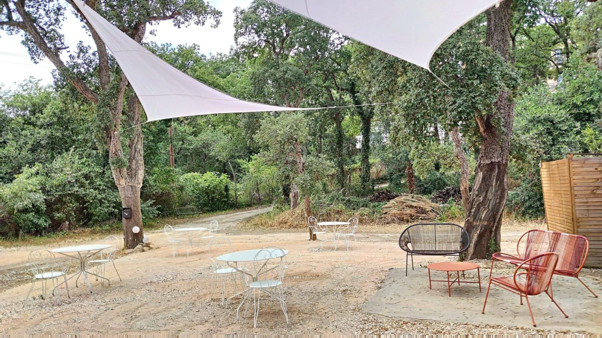 Vous apprécierez les grands espaces extérieurs de plus de 1,5 ha non clôturés, arborés de chênes lièges et d’oliviers. Studio, appartement ou villa…., choisissez ! En famille, entre amis, ce village de gîtes vous attend ! Vous séjournerez proche de la nature tout en étant à deux pas de l’animation, des plages et des criques ! La nouvelle piste cyclable EuroVelo8 passe devant le domaine. Pour chaque gîte, une place de parking privative et sécurisée est à votre disposition. A l’étage (3 marches) : Ce joli studio, équipé d’une cuisine avec pièce à vivre (1 lit 140), d’une salle d’eau (wc), est ouvert sur son balcon de 5,5 m² avec vue sur les montagnes. Le balcon est aménagé en cursive commune à 3 gîtes.