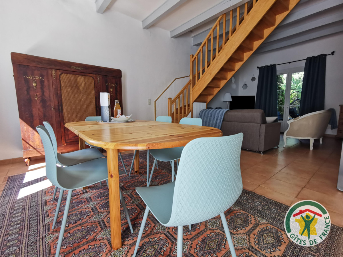 Entièrement rénové, ce mas vigneron offre un cadre enchanteur avec des installations haut de gamme telles qu’un jacuzzi (disponible sur demande), une grande piscine commune (19X5 mètres), des aires de jeux, et bien plus encore. Imprégnez-vous de l’atmosphère unique du Mas de Cadoule, entouré d’un parc majestueux, de vastes espaces verts, et de vergers sur près de 4 hectares. L’architecture préservée et la cour intérieure paysagée ajoutent une touche d’histoire à ce havre de modernité. Découvrez la Maison de Elise, un gîte exceptionnellement bien pensé offrant tout le confort nécessaire pour une retraite paisible au cœur de jardins luxuriants. Ancien logement de la Cuisinière du Mas, cette demeure a été entièrement rénovée en 2022 pour créer une magnifique maison de vacances de 80 m2 sur 2 niveaux, comprenant 3 chambres composée de 2 lits doubles (140X200 cm) et 2 lits simples (90X190). Au rez-de-chaussée, une vaste pièce de 35 m2 abrite une cuisine entièrement équipée, une table avec ses chaises pour les repas, un salon, ainsi qu’un WC indépendant avec lavabo. À l’étage, découvrez trois chambres confortables et une salle de bain avec WC. La qualité hôtelière de tous les lits assure un repos optimal pendant votre séjour. Profitez de services inclus : Parcourez les 4 hectares de parcs, jardins et vergers. Garez votre véhicule dans le parking ombragé et sécurisé avec portail automatique. Protégez vos motos et vélos dans l’espace couvert dédié. Organisez des moments conviviaux avec le barbecue. Détendez-vous au bord de la piscine de 19X5 mètres, ouverte de 11h jusqu’au coucher du soleil de mai à septembre. Amusez-vous en famille sur l’aire de jeux comprenant 2 trampolines. Défiez vos proches à la pétanque, au ping-pong, au foot ou au basket. Profitez d’une séance de SPA offerte durant votre séjour. Contribuez à notre démarche éco-responsable en utilisant le local à poubelles équipé pour le tri et le compostage. Options: ménage(70 €) linge (10€/lit + 5€/pers)