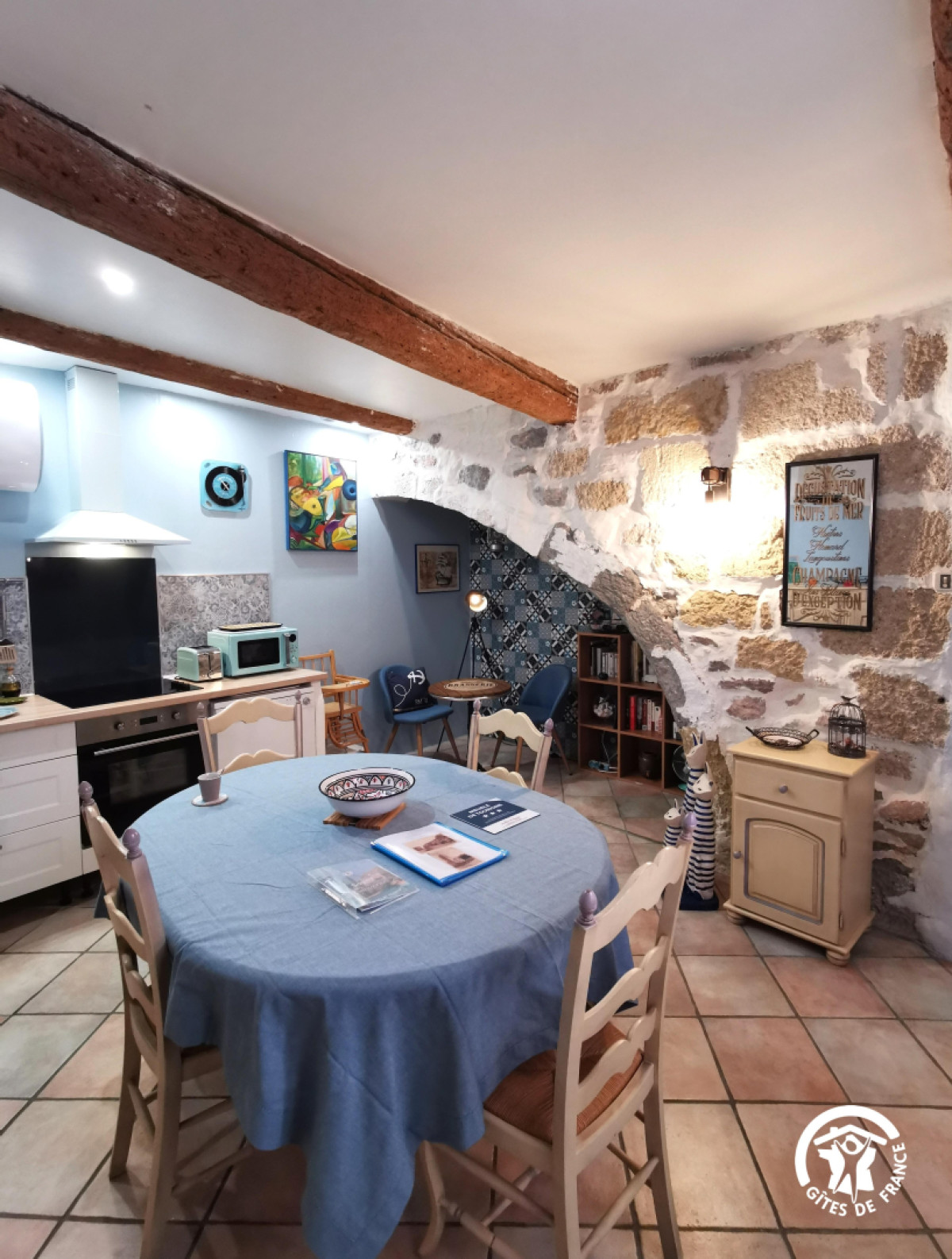 Sur 3 niveaux, cet hébergement de 60 m2 vous propose au rez-de-chaussée une grande salle de vie avec une cuisine toute équipée (machine à café Senseo, four, micro-ondes, ustensiles de cuisine, lave-vaiselle…) ainsi qu’un espace de détente vec canapé et une télévision. Vous trouverez au premier étage: une chambre double (lit 140x190cm), une salle de bain refaite à neuf (avec lave linge), des WC séparés. Le dernier étage donne lieu à une seconde chambre double (2 lits simples 70x190cm) ainsi qu’à une salle de séjour où vous aurez accès à une télévision avec un large bouquet TV. Dans cette pièce, un canapé clic-clac (140×190 cm) est également à votre disposition. Attention, le logement n’est pas adapté aux personnes à mobilité réduite (escalier un peu raide). ATTRAITS TOURISTIQUES : Ce joyau du bassin de Thau se situe à seulement 150 mètres de l’étang et de ses plages. Le centre d’ostréiculture ainsi que les ports de pêche et de plaisance se situent également à quelques mètres. La fête de l’huitre se tient tous les ans au début du mois d’Août. La station thermale de Balarac-les-Bains est à 9km, la ville de Sète (terre de Paul Valéry et Georges Brassens) est à moins de 15km. Les alentours de Bouzigues sont riches en découvertes : la ville de Montpellier, la cathédrale de Villeneuve-les-Maguelone, la ville de Pézénas, le Canal du Midi et ses ecluses… NB: Le logement est loué chauffage, électricité, draps, linges de toilette inclus. Le ménage de fin de séjour est en option.
