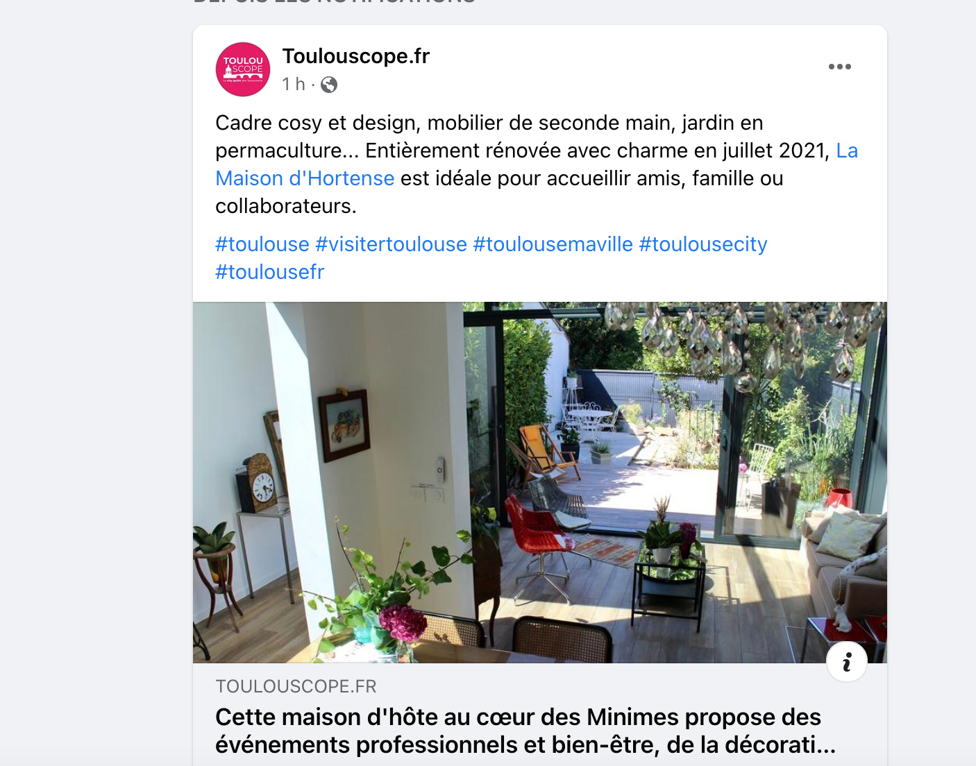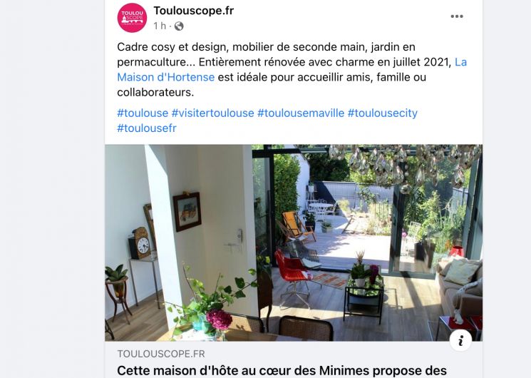 Maison de ville de charme , chaleureuse et vivante, à proximité de tous les commerces et services. Dans le quartier des Minimes cher à Claude Nougaro, cette maison de ville, entièrement rénovée pour vous accueillir par Catherine, est située dans un environnement calme. Ici, un soin particulier est apporté au respect de l’environnement et à la décoration au fil des saisons, dans un esprit cosy et vintage.