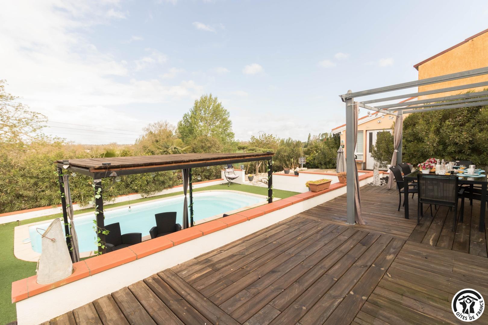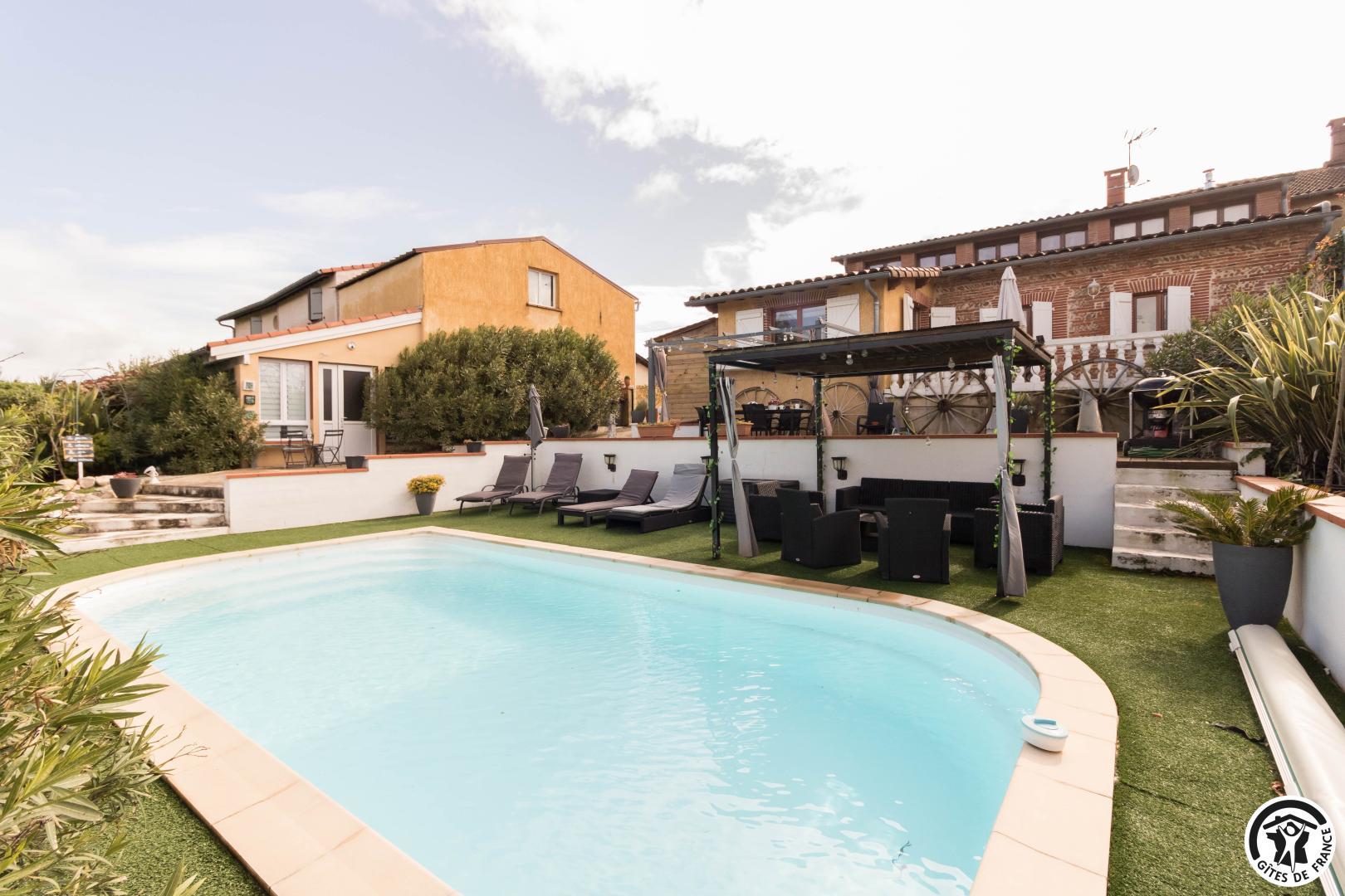 Chambre d’hôtes familiale, composée de 2 chambres double, lits 160×200 et 140×200, située à 30km au sud du centre historique de Toulouse, avec spa, piscine et terrain de pétanque !