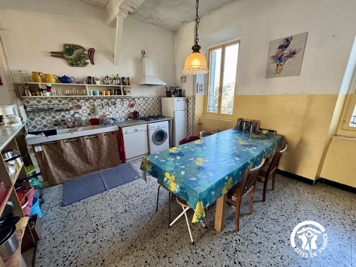 Située dans le charmant village de Davejean, cette maison de maître datant de 1865 vous accueille pour un séjour authentique au cœur d’un environnement naturel préservé. Ce gîte de caractère est idéal pour les familles et les groupes d’amis. Jardin aménagé avec mobilier, parfait pour les repas en plein air et les moments de détente. À l’avant, une terrasse équipée d’un salon de détente permet de profiter pleinement des beaux jours et du calme du village. Le stationnement se fait dans la rue, à proximité immédiate du gîte. Davejean est un lieu privilégié pour les amateurs de nature et de plein air. Des sentiers de randonnée situés à côté du gîte permettent de partir à pied à la découverte des paysages typiques des Hautes-Corbières, entre collines, garrigue, panoramas naturels et splendide vue des Pyrénées. Les chemins sont adaptés aussi bien aux balades tranquilles qu’aux randonnées plus sportives et longues (Sentiers GR). Spots de baignade à proximité: lac de Massac (15minutes), rivière de l’Orbieu (20min). Le village offre une atmosphère authentique et animée, avec des animations locales et le passage régulier de marchands ambulants, tels que la boulangerie, la boucherie et d’autres commerces, facilitant le quotidien. Les commerces (épicerie, restaurant, pizzéria, marché locaux) sont situés dans les villages voisins à quelques minutes seulement en voiture. Au RDC: – Un séjour avec coin salon et cuisine ouverte toute équipée (frigo-congélateur, lave-vaisselle, cafetière à filtre, lave-linge, four, micro-ondes). – Salle d’eau indépendante (douche, WC). Au 1er étage: – Chambre 1: lit 140x190cm + 90x190cm – Chambre 2: lit 160×200 (2×80) + lit 90x190cm avec salle de bain privative (baignoire, WC). – Une petite troisième chambre avec un lit 90x190cm. Au 2è étage: – Chambre 3: lit 140x190cm + lit 90x190cm + salle d’eau privative (douche, WC). – Chambre 4: lit superposé 80x190cm + lit 90x190cm + mezzanine avec 2 matelas d’appoint. 1 chien maximum accepté