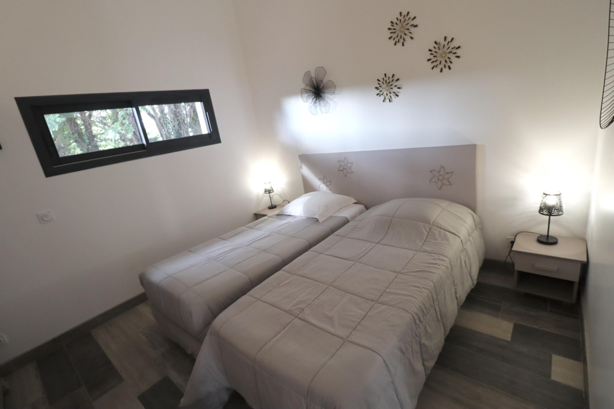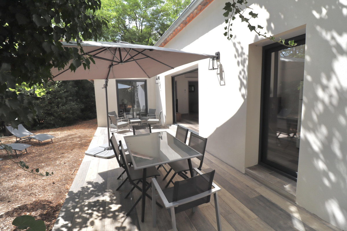 Entièrement rénové, ce mas vigneron offre un cadre enchanteur avec des installations haut de gamme telles qu’un jacuzzi (disponible sur demande), une grande piscine commune (19X5 mètres), des aires de jeux, et bien plus encore. Imprégnez-vous de l’atmosphère unique du Mas de Cadoule, entouré d’un parc majestueux, de vastes espaces verts, et de vergers sur près de 4 hectares. L’architecture préservée et la cour intérieure paysagée ajoutent une touche d’histoire à ce havre de modernité. Découvrez La Maison de Danou, l’ancienne demeure de vacances des parents des propriétaires actuels, nichée au cœur d’une pinède à proximité du Mas. Cette maison indépendante de plain-pied de 65 m2 offre une expérience unique. Sa terrasse de 25 m2 vous offre une vue exceptionnelle sur un jardin privatif non clôturé de 1500 m2. La maison se compose d’une grande pièce de 30 m2 avec poutres apparentes, poêle à bois, et une baie vitrée à galandage, créant une harmonie parfaite entre l’intérieur et l’extérieur. Profitez de la nature environnante, accompagné du chant des oiseaux et des cigales tout au long de votre séjour. La cuisine est entièrement équipée pour répondre à tous vos besoins. Deux chambres spacieuses de 14 et 12 m2 peuvent accueillir confortablement jusqu’à 4 personnes (1 lit double 160X200 cm et 2 lits simples 90X200). La salle d’eau dispose d’une douche à l’italienne, et un WC séparé est également présent. Tous les lits, récents et de qualité hôtelière, assurent un repos optimal, tandis que la climatisation réversible vous garantit un confort optimal, quel que soit le temps. Profitez de services inclus : Parcourez les 4 hectares de parcs, jardins et vergers. Garez votre véhicule dans le parking ombragé et sécurisé avec portail automatique. Protégez vos motos et vélos dans l’espace couvert dédié. Organisez des moments conviviaux avec le barbecue. Détendez-vous au bord de la piscine de 19X5 mètres, ouverte de 11h jusqu’au coucher du soleil de mai à septembre. Amusez-vous en f