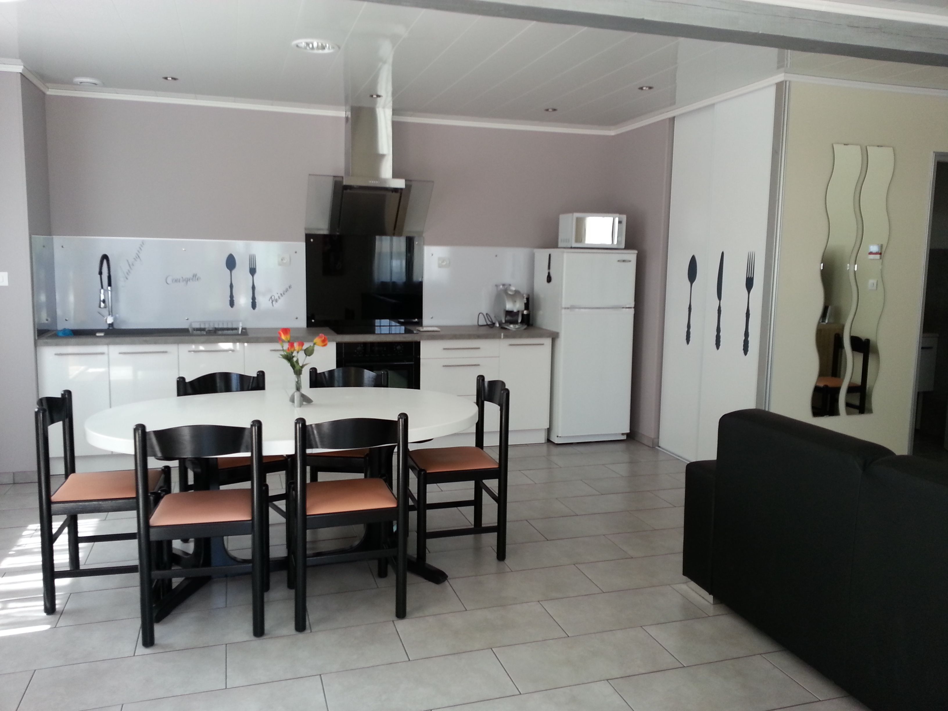 En campagne, le gîte de plain-pied, comprend : 1 grand séjour (35 m2) avec salon (canapé d’angle, et salle à manger, cuisine (MO, LV), 1 chambre (1 lit 160), 1 ch (2 lits 90), 1 ch (2 lits 90). 1 salle d’eau (douche italienne) et 1 wc indépendant avec lavabo accessibles aux personnes à mobilité réduite. Buanderie commune avec machine à laver et table à repasser. Terrasse (salon de jardin et barbecue), jardin (bains de soleil) et parking privés. Climatisation réversible. Accès internet Wifi gratuit. Agrée Accueil Vélo. Domaine sous vidéo surveillance.