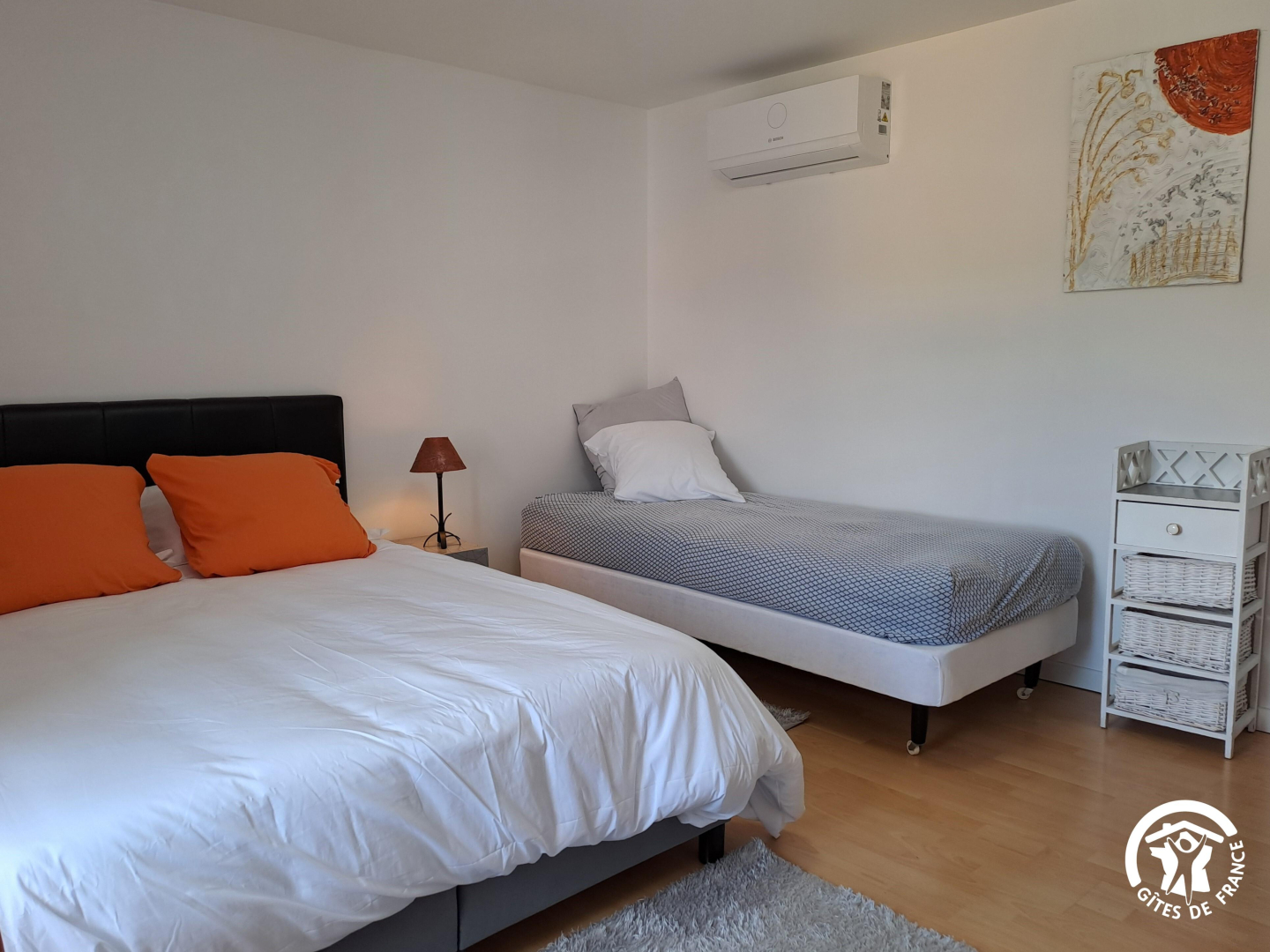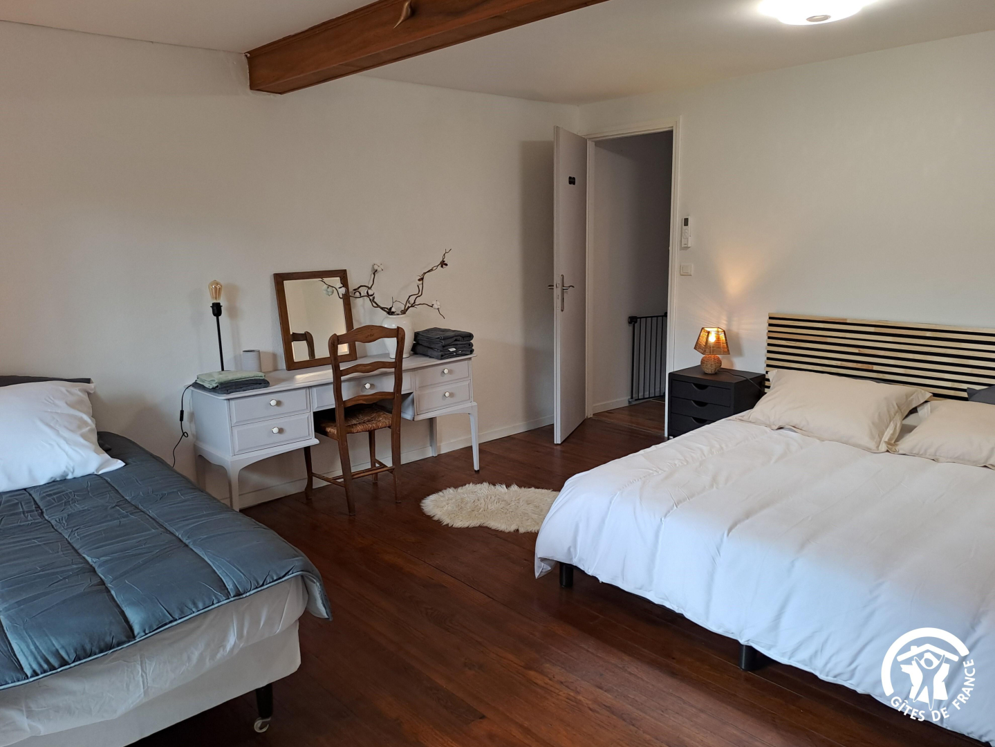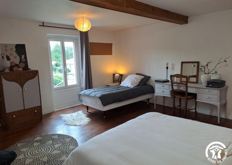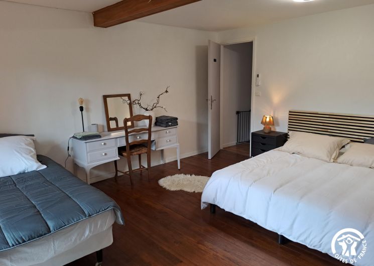 – Chambre Nicole et Germain (25 m²) : un lit 160×200 et un lit 90×190