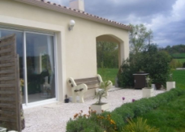 Gîte indépendant de plain-pied, de construction récente, à proximité d’un hameau. Gîte clair et lumineux, ouvert sur la campagne environnante, à la décoration et à l’aménagement harmonieux et personnalisé.