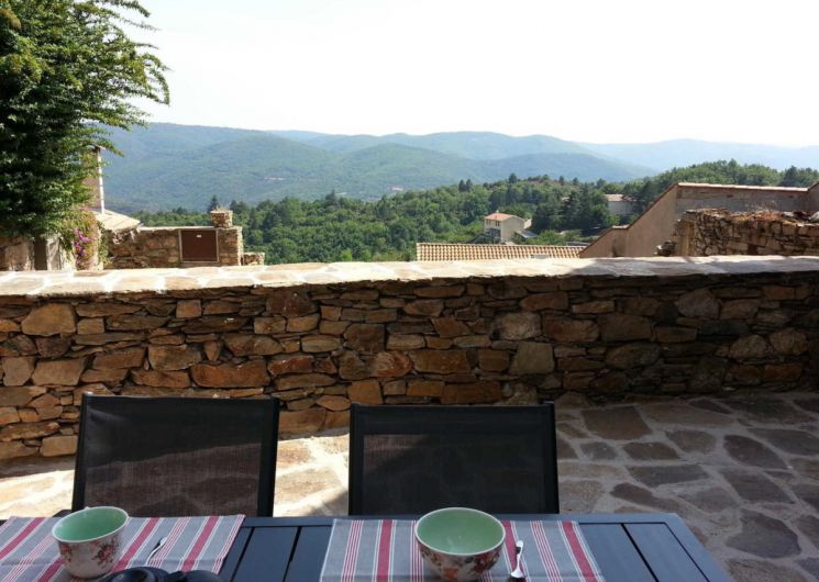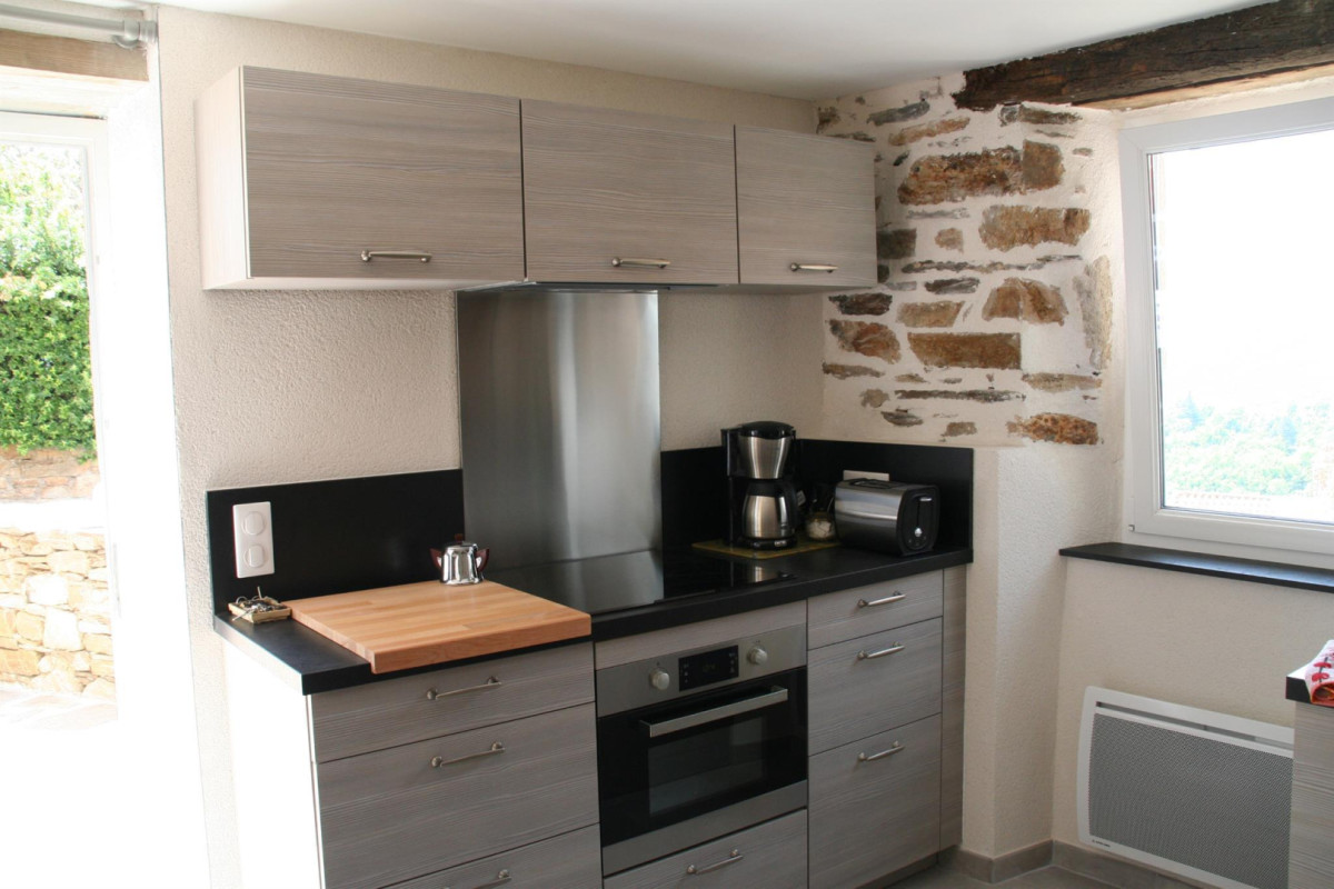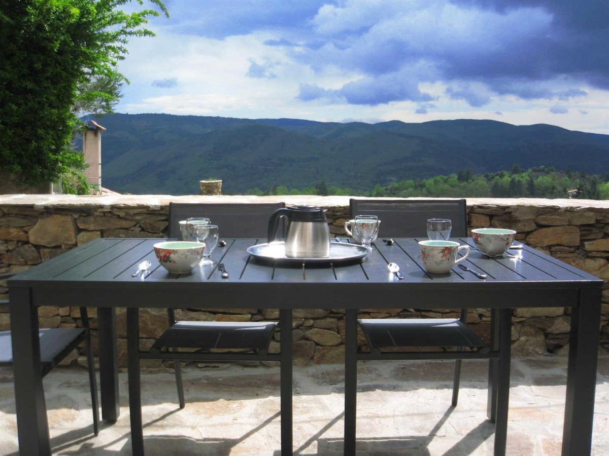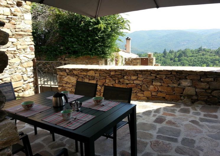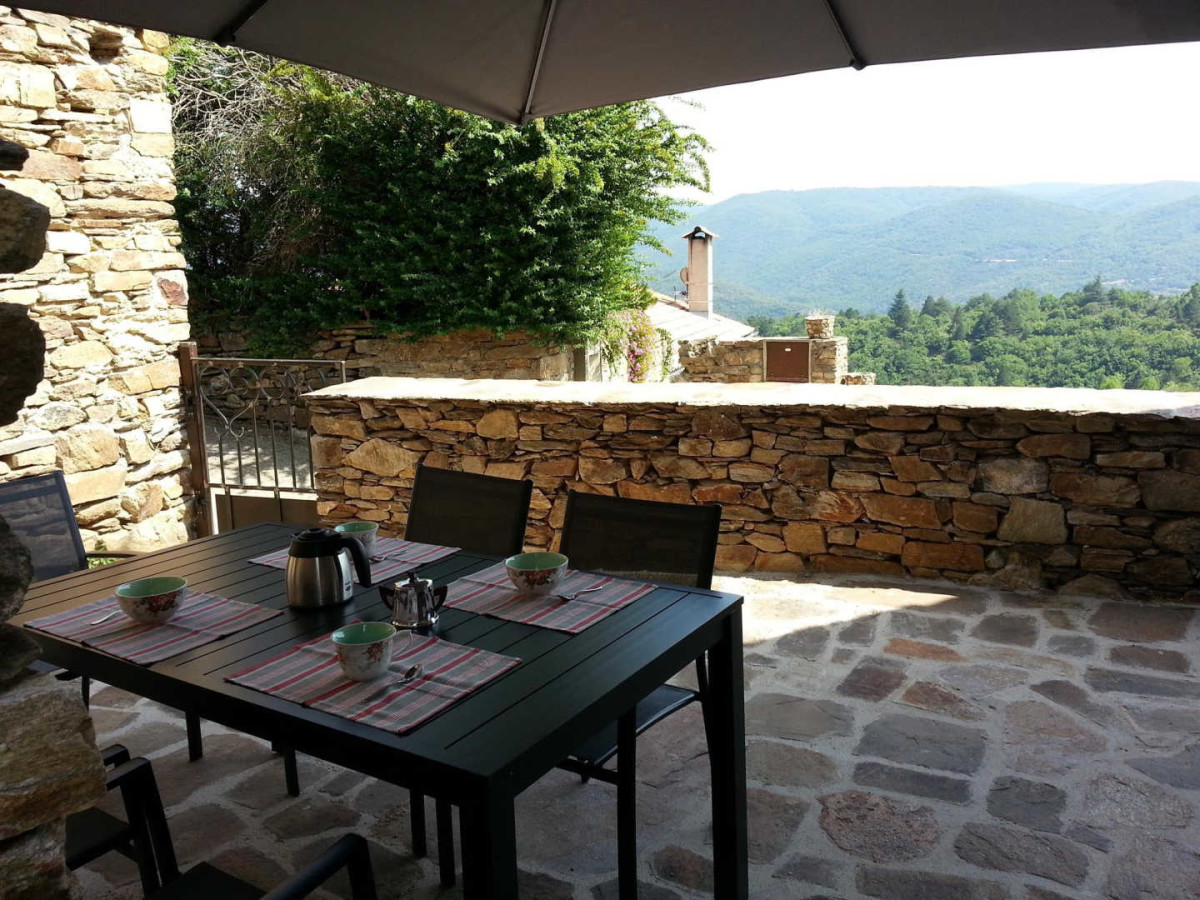 Rez de chaussée : espace cuisine/séjour, 1er étage : 1 ch. (2 lits 90X200cm modulable en 1 lit 180cm, 1 lit 1 pers.), salle d’eau/wc, ch.électrique inclus, poêle à bois (bois fourni), TV, lits faits, ménage sur demande. Terrasses (50m²), salon de jardin, barbecue, local pour vélos. Superficie 42m². Stationnement: parkings publics à 20 mètres et 200 mètres du gîte. ATTRAITS TOURISTIQUES : Parc Naturel du Haut Languedoc, Massif du Caroux et Monts de l’Espinouse. Sur place randonnées GR 7 à 3 km, Olargues, village classé, Gorges d’Héric, Vélo/VTT, canoë-kayak, Roquebrun, Vieussan, lacs (Laouzas, Raviège, Saut de Vésolles), en octobre, fête de la chataîgne à Saint Pons de Thomières.