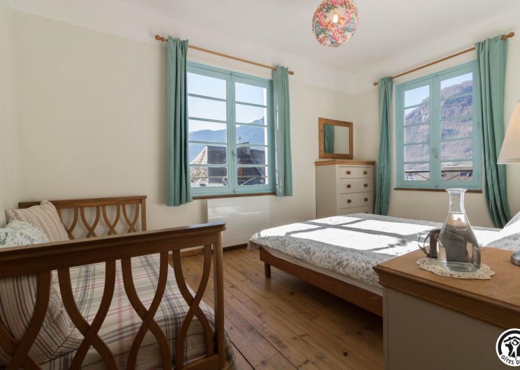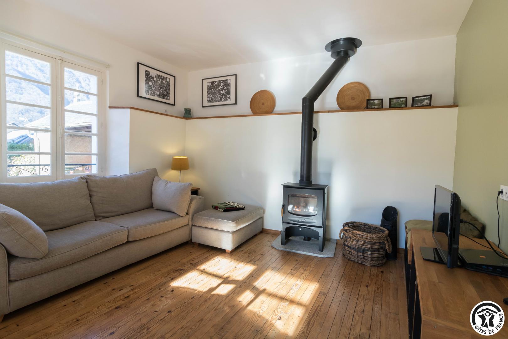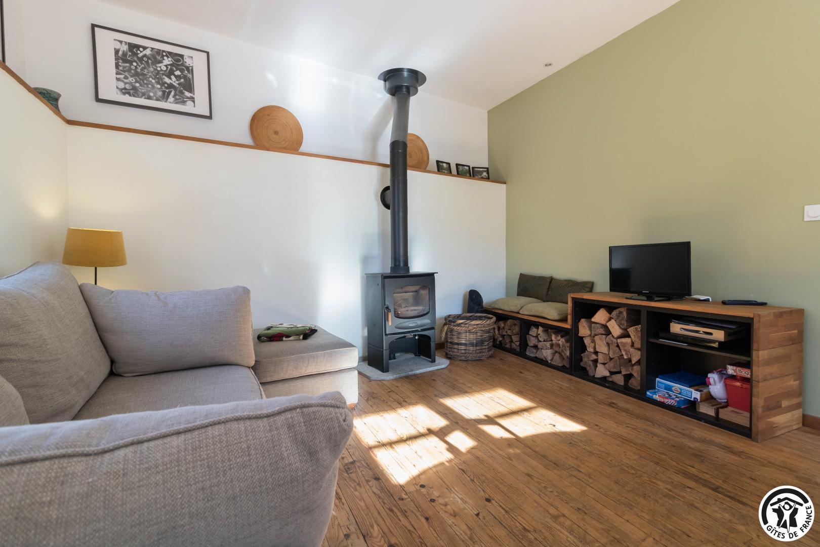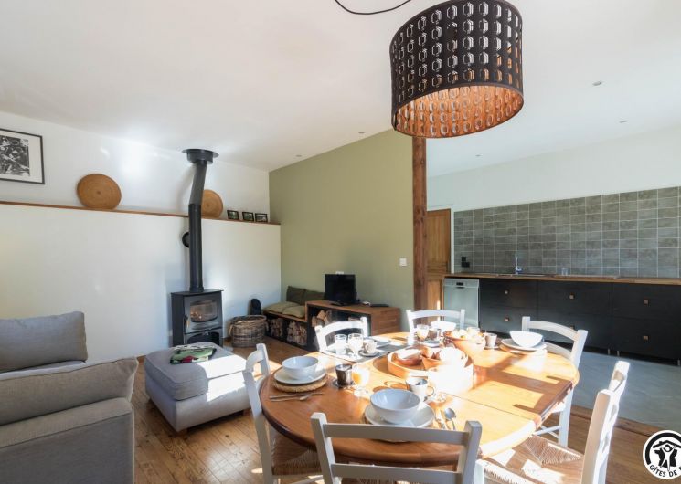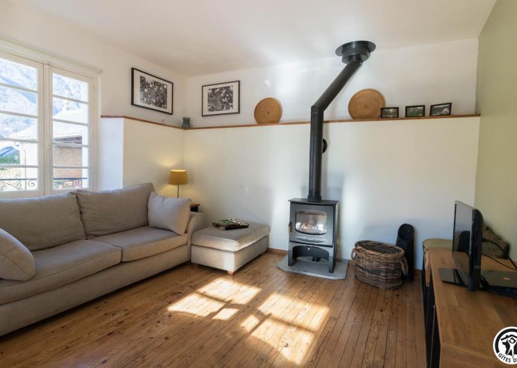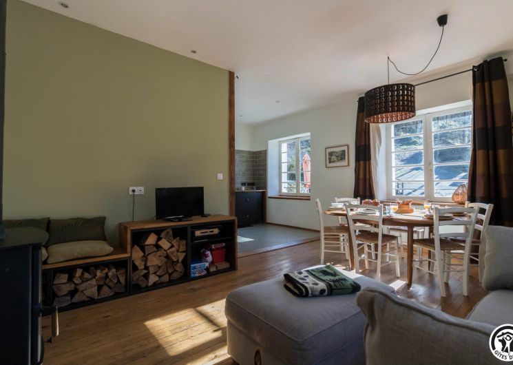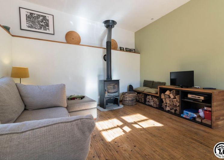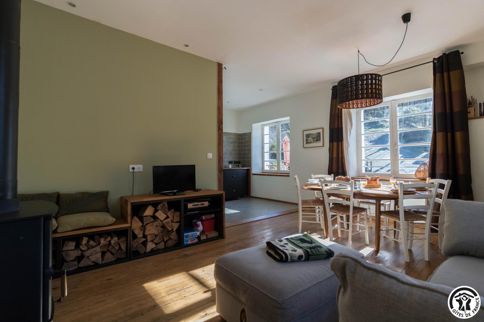 Au rez-de-chaussée : hall d’entrée, cuisine ouverte sur le séjour (poële à bois). A l’étage : 3 chambres (1 lit double en 160*200cm) (1 lit double en 160*200cm) (2 lits simples en 90*190cm), salle d’eau avec WC. La place de parking et la terrasse aménagée devant le gîte sont publics.