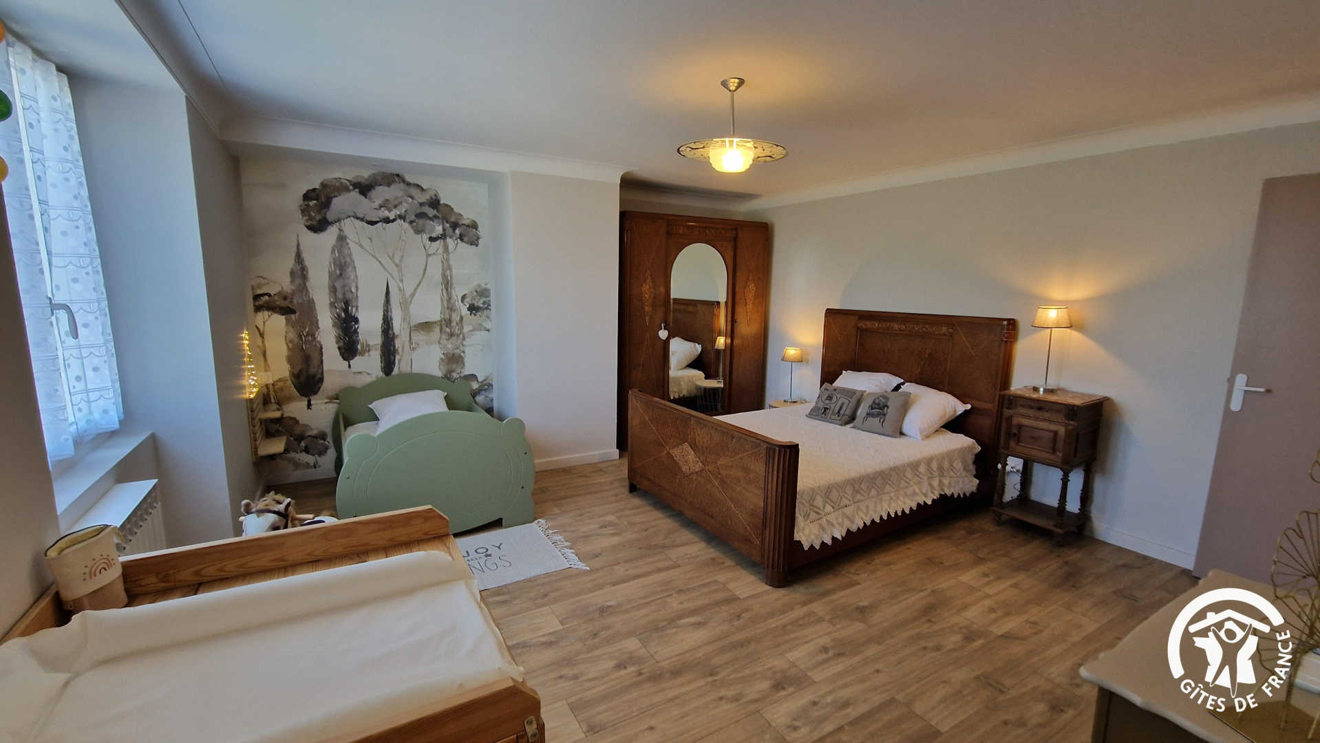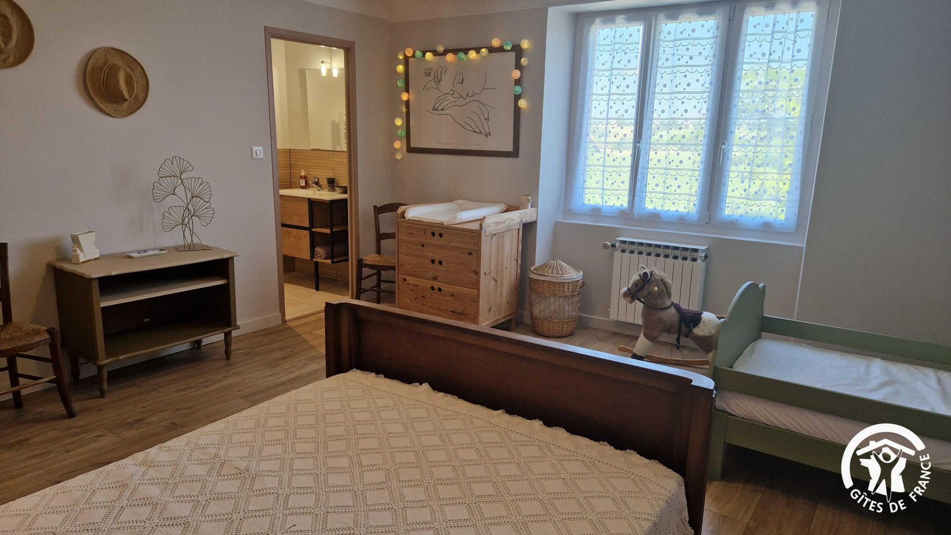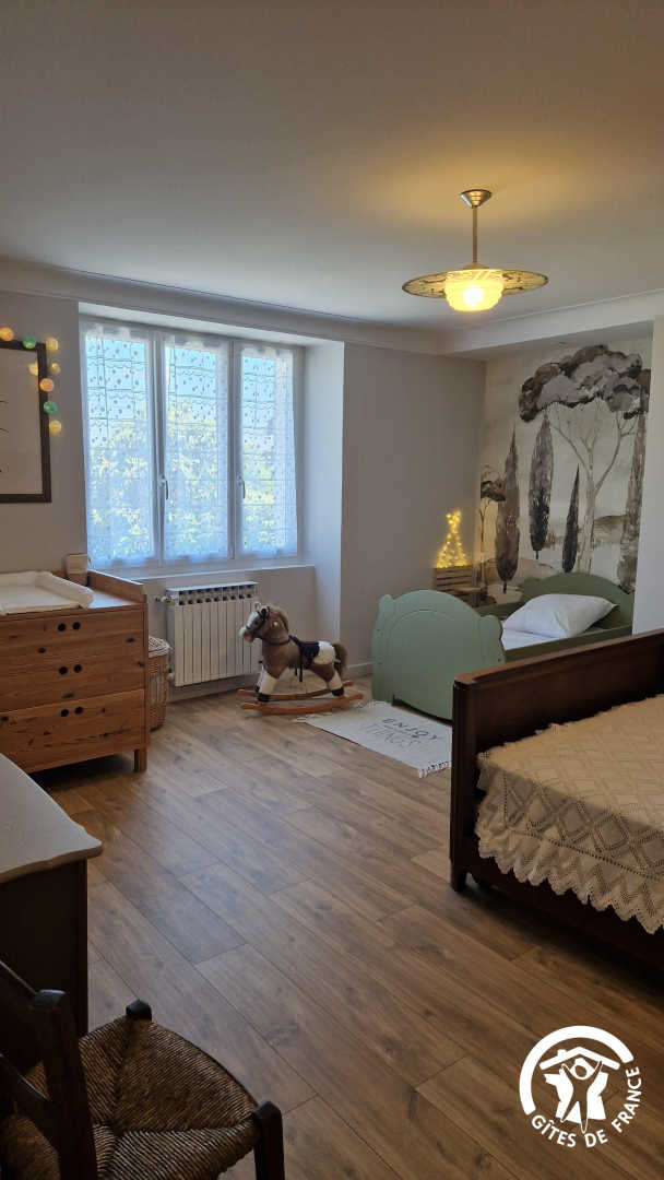 – chambre parentale avec lit double et un lit évolutif pour les enfants (idéal pour les -10 ans, qui peut se transformer en lit 90x190cm) et salle d’eau attenante