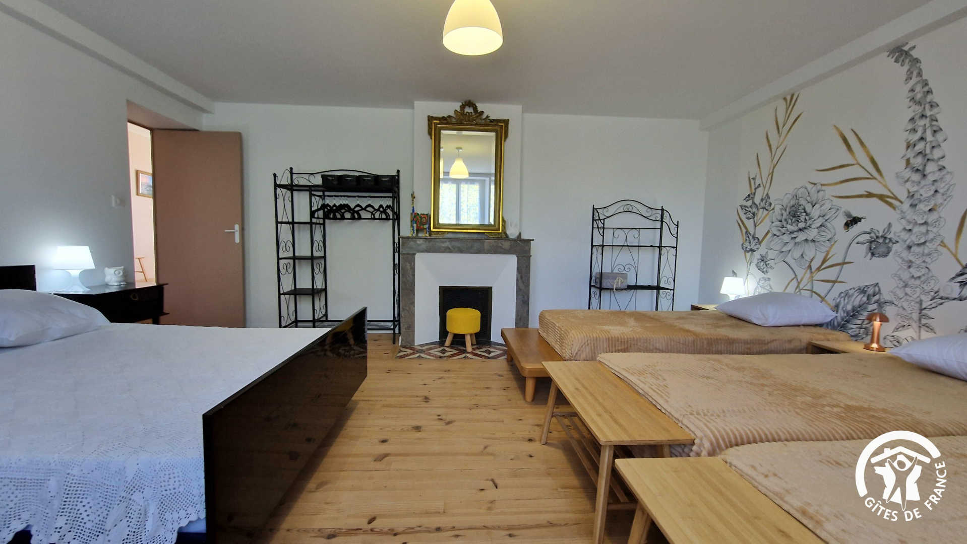 – chambre accessible aux personnes à mobilité réduite avec lit double et salle d’eau attenante (barres d’appui)