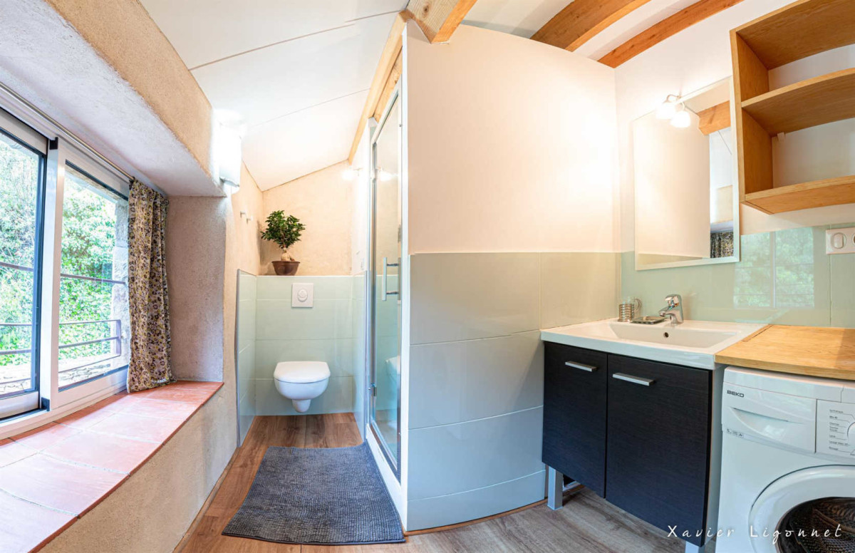 Rez de chaussée : séjour/espace cuisine, 1er étage : 1 chambre (2 lits 1 pers.), salle d’eau/wc. TV, chauffage électrique et climatisation réversible. Frais d’électricité inclus dans la limite de 8 kw/h par jour. Lits faits, ménage fin de séjour sur demande, possibilité de location linge de toilette. Profitez de l’espace extérieur : Terrasse (11m²), salon de jardin, barbecue, piscine (14×7 m) clôturée, commune (ouverture début juin/fin septembre). 2 autres gîtes sur le domaine. Superficie de l’hébergement : 41 m². ATTRAITS TOURISTIQUES : Parc Naturel du Haut Languedoc, Massif du Caroux et Monts de l’Espinouse. Sur place randonnées GR 7 à 3 km, concerts au Prieuré de St Julien, vergers (cerisiers), vignes, Olargues, village classé. Gorges d’Héric, VTT, canoë-kayak canyoning, Roquebrun, Vieussan, lacs (Laouzas, Raviège, Saut de Vésolles), en octobre, fête de la chataîgne à St Pons de Thomières.