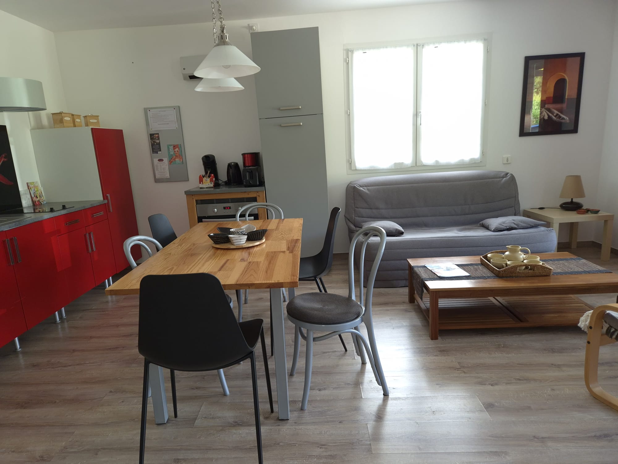 L’appartement entièrement équipé permet les longs séjours. Deux chambres avec lits de 160 cm, une salle de douche avec wc. Une cuisine ouverte sur salle et salon, une terrasse ombragée. Les équipements permettent d’être autonome pour préparer les repas.Internet et Wifi disponible gratuitement.