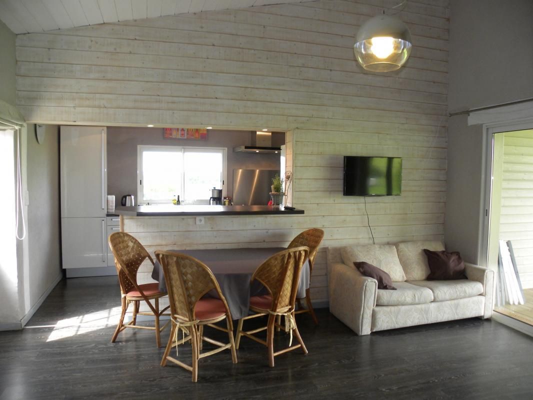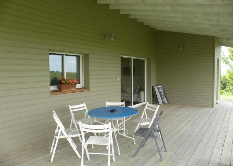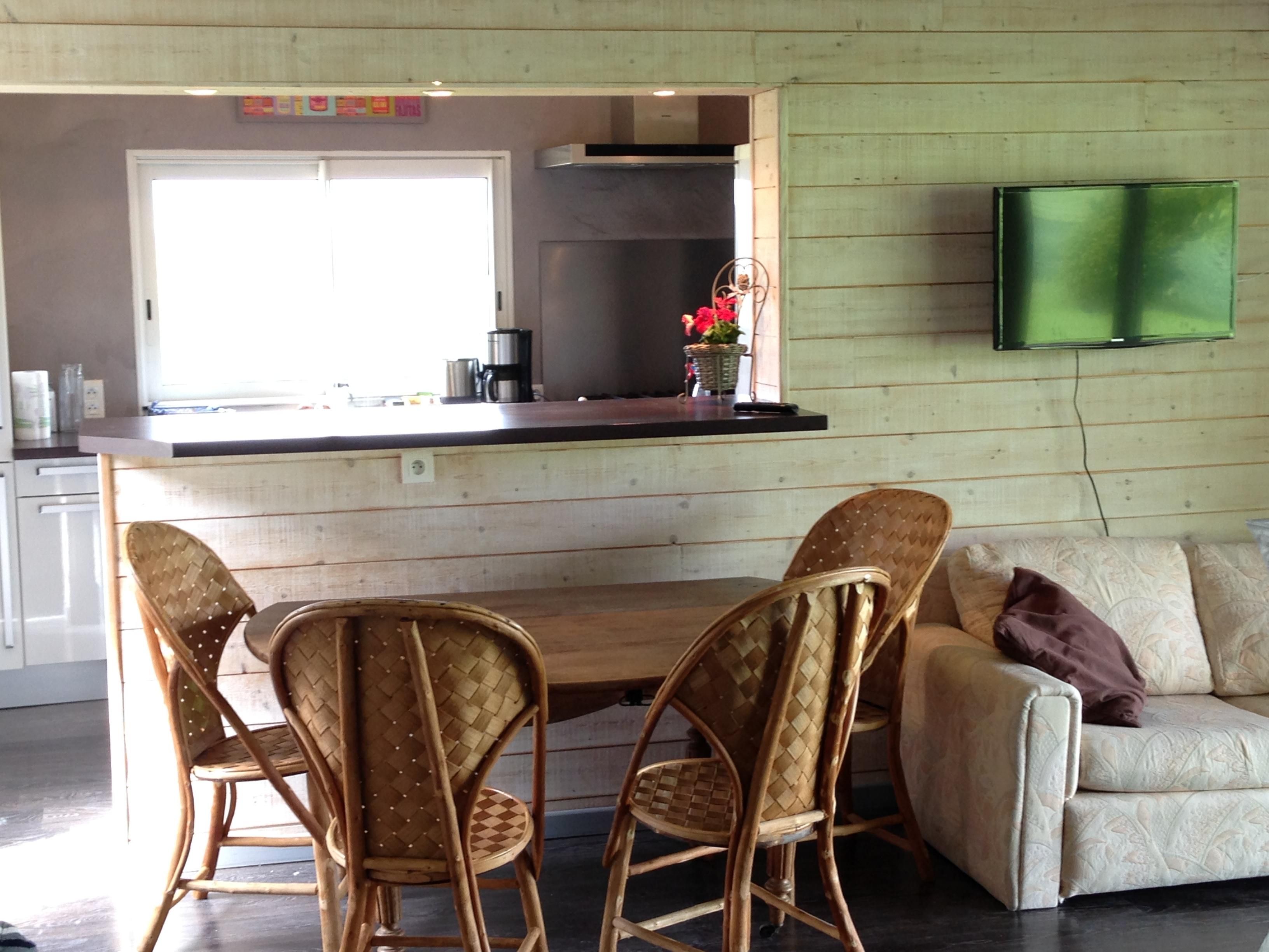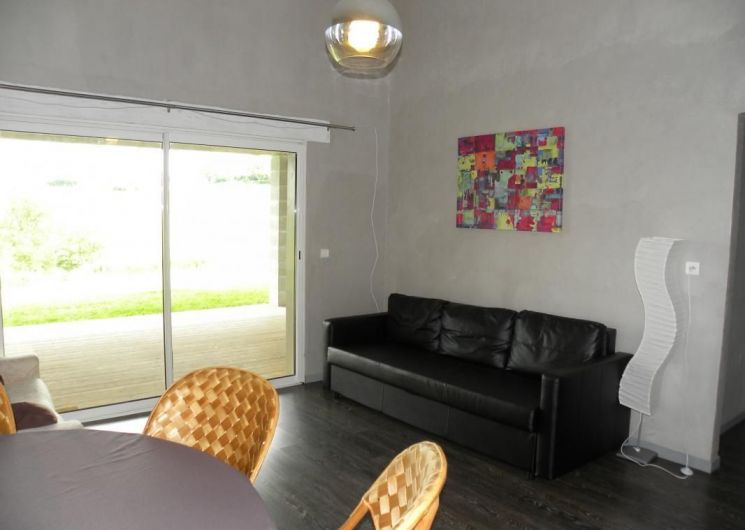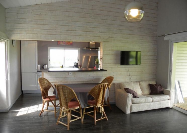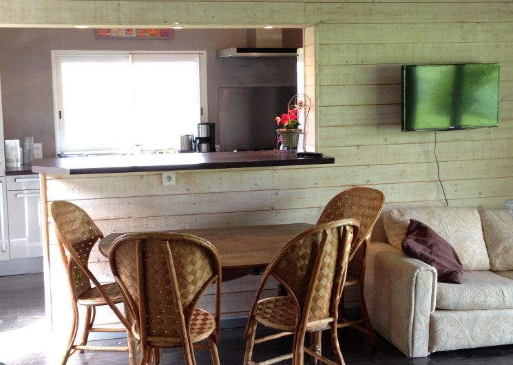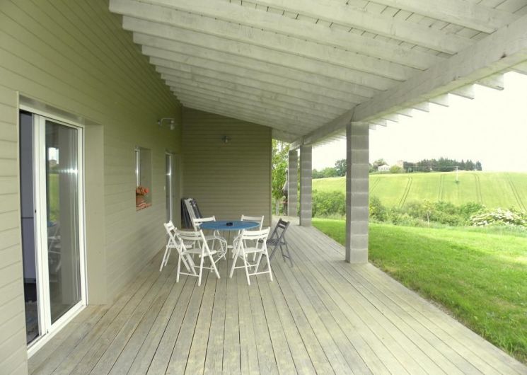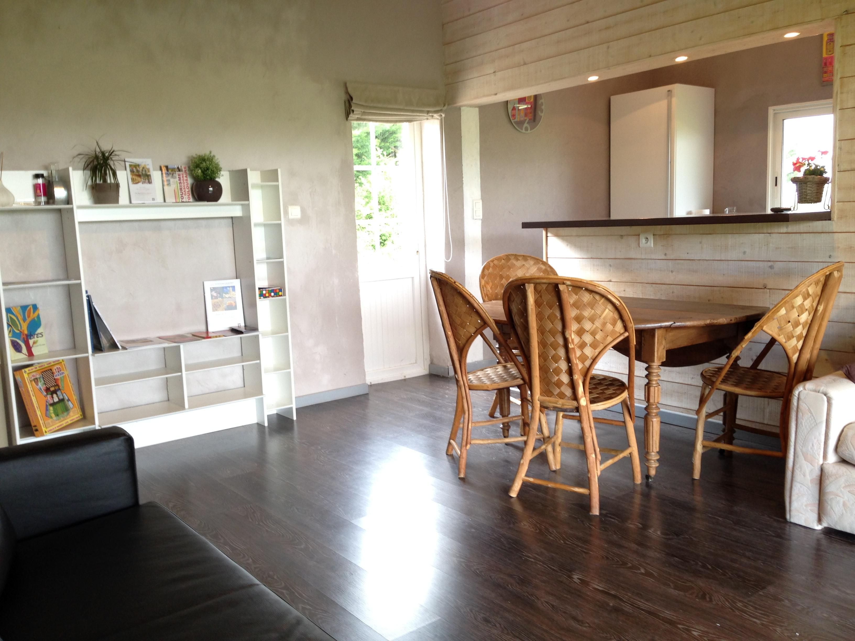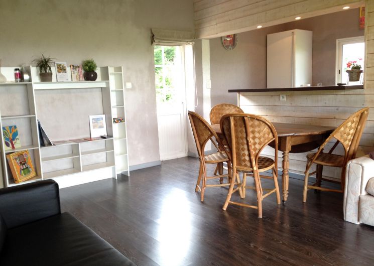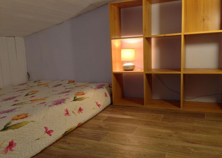 Gîte de plain-pied. Capacité : 2 à 7 personnes (couchages d’appoints). Cuisine équipée ouverte sur le séjour : espace dinatoire et salon avec 2 canapés, Tv, baie-vitrée donnant sur la terrasse couverte. Chambre avec 1 lit 140 + 1 couchage d’appoint en mezzanine. Espace nuit avec 1 lit 90. Dressing avec coffre-fort. Salle d’eau. Wc indépendant. Buanderie avec lave-linge. Terrasse couverte avec salon de jardin et barbecue. Terrain non clos. Sur place un gîte d’étape.