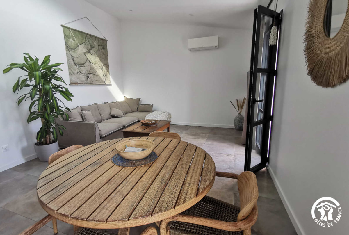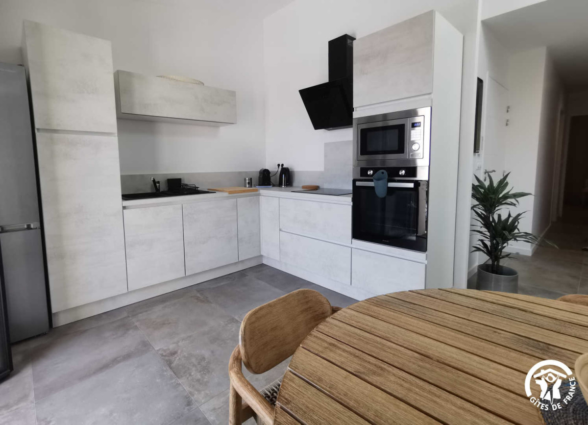 Ce joli appartement de 100m2 a été refait à neuf afin de vous offrir un cadre idéal pour des vacances à la mer. Vous y trouverez un beau séjour lumineux avec une vue surplombant le port et ses bateaux, une cuisine ouverte toute équipée (four, micro-onde, lave-vaisselle, machine à café ainsi que tout le nécessaire de cuisine). La salle de bain est équipée d’une douche à l’italienne, d’un grand miroir et de nombreux rangements. Les deux grandes chambres ont un lit queen size et un dressing. Vous serez rapidement séduit par la terrasse tropézienne de ce gîte qui vous permettra de profiter du beau temps en étant au calme. Afin de vous offrir le maximum de confort, le gîte est équipé d’une TV, d’une connexion WiFi, de la climatisation dans chacune des pièces, d’un fer à repasser, d’un sèche-cheveux et d’une machine à laver. Les charges, les draps et le linge de toilette sont inclus. Le ménage est en option à 50€. Parking sur réservation auprès des propriétaires. ATTRAITS TOURISTIQUES: La ville de Marseillan est idéalement située sur le bassin de Thau, à proximité de la Lagune et de Sète. A quelques kilomètres seulement des villes de Béziers et Montpellier, vous pourrez également profiter d’escapades citadines mais aussi profiter du littoral et des plages. De nombreuses activités sont possibles à Marseillan: se promener le long des quais et admirer les bateaux de pêche traditionnels, faire une balade à vélo le long de la piste cyclable qui relie Marseillan Ville à Sète, profiter des larges plages de sables et se baigner dans la mer Méditerranée, visiter le Musée de l’Huître et de l’Ostréiculture, qui retrace l’histoire de la culture de ces mollusques, apprécier le calme et la beauté des paysages de la réserve naturelle du Bagnas.